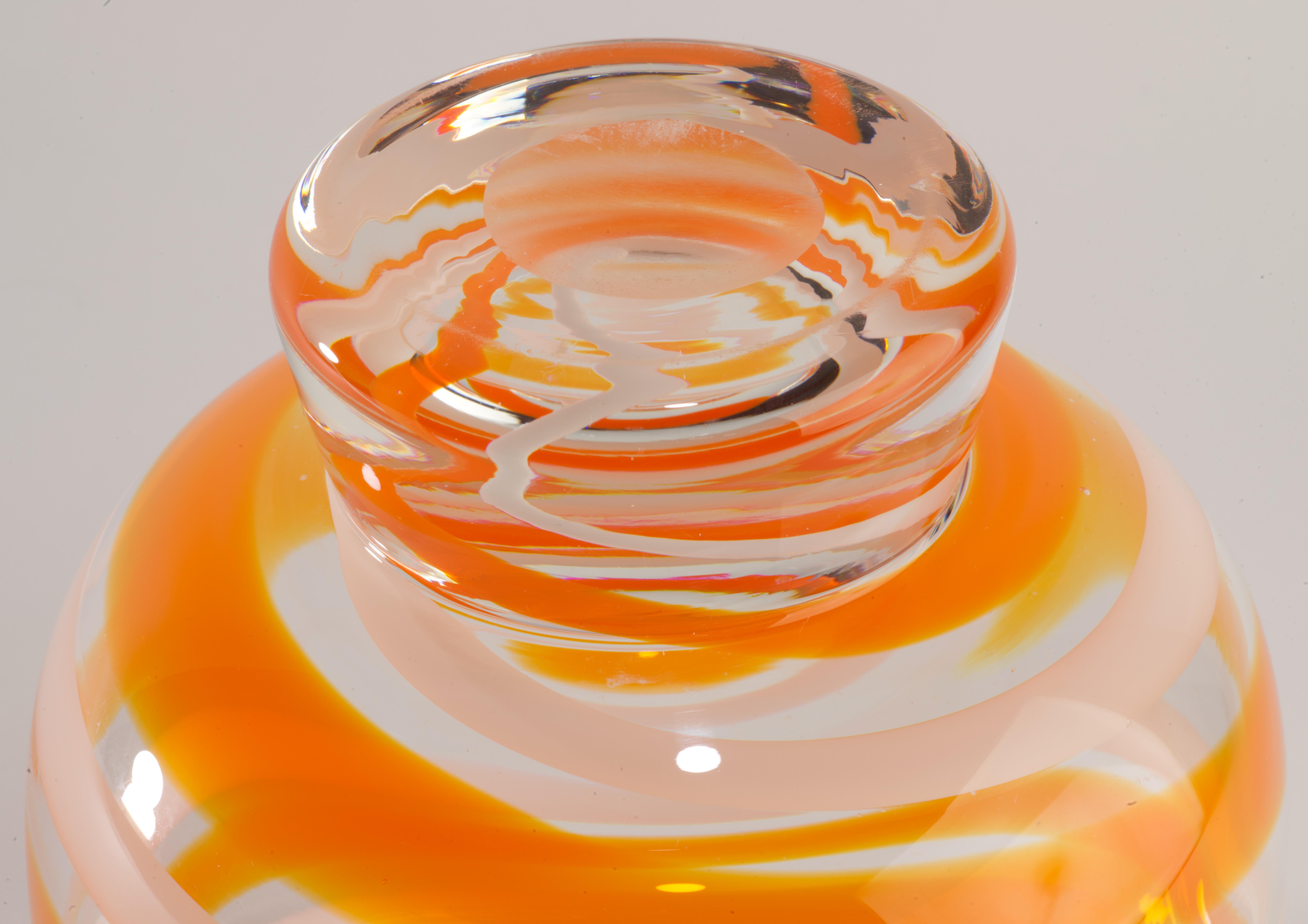 Vaso in vetro artistico arancione, bianco e trasparente in stile Scandinavian Modern