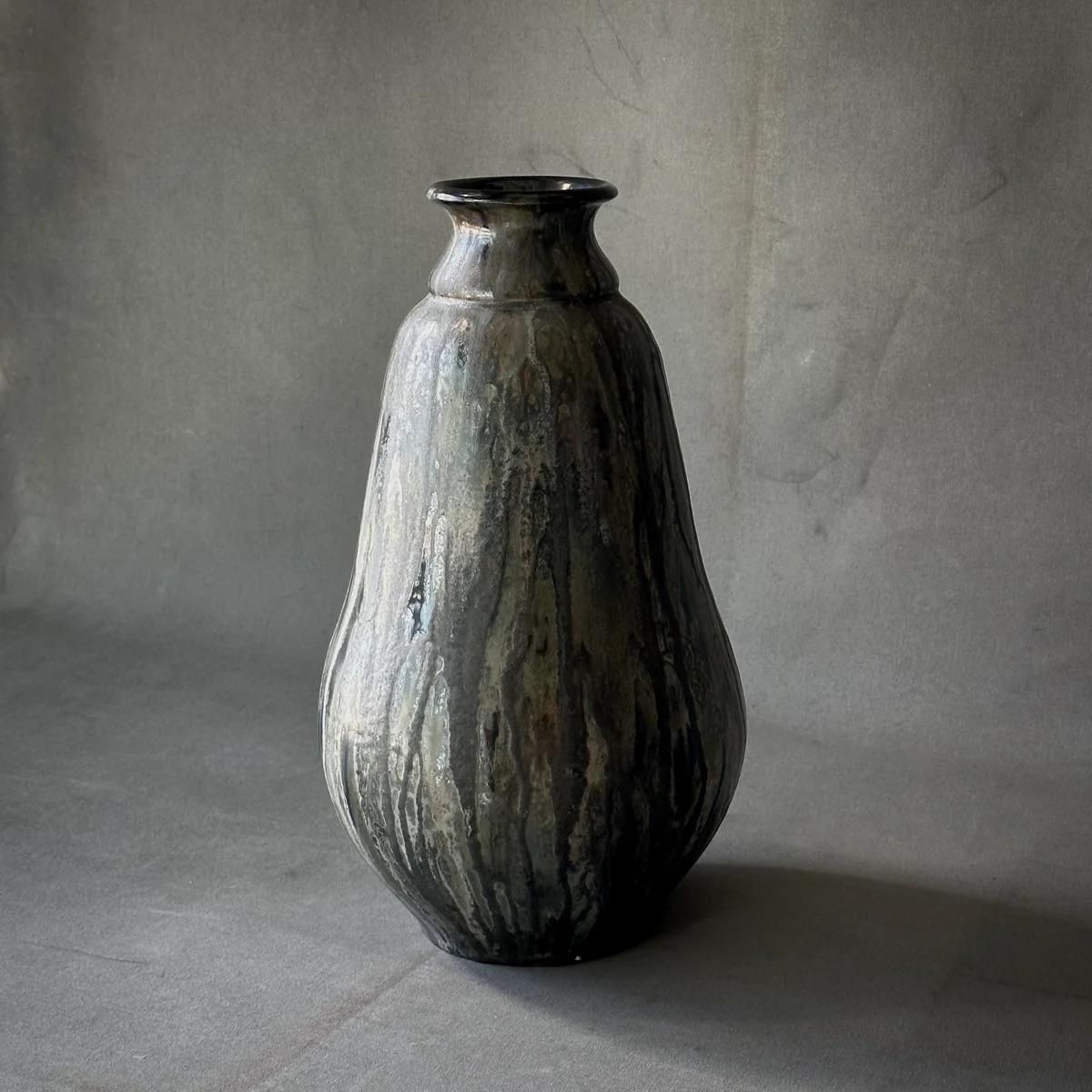 Vaso d'arte in gres alto squisitamente smaltato Roger Guérin Bouffioulx, 1930 circa
