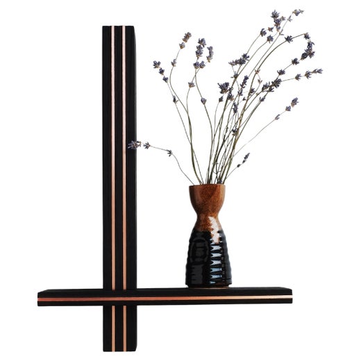 Mensola galleggiante a parete in Wood e rame intarsiato di Huy Lam, ""Elevate No. 4"".