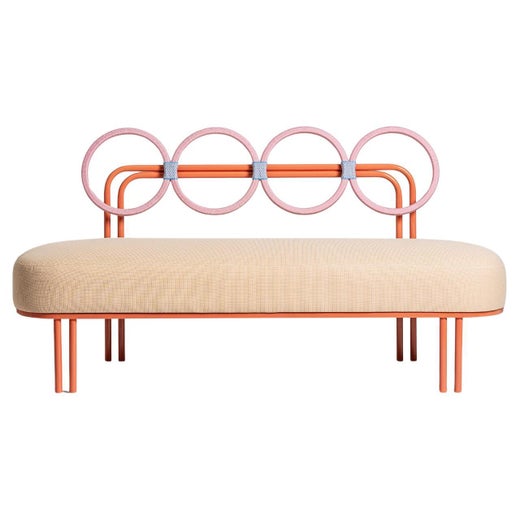 Lampada scultorea moderna Creta Variously Corde in acciaio in arancione di Laura Casañas Maya