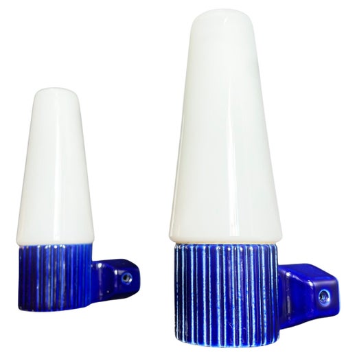 Lampade da bagno in ceramica vintage Ifö of Sweden degli anni '60 di colore azzurro.