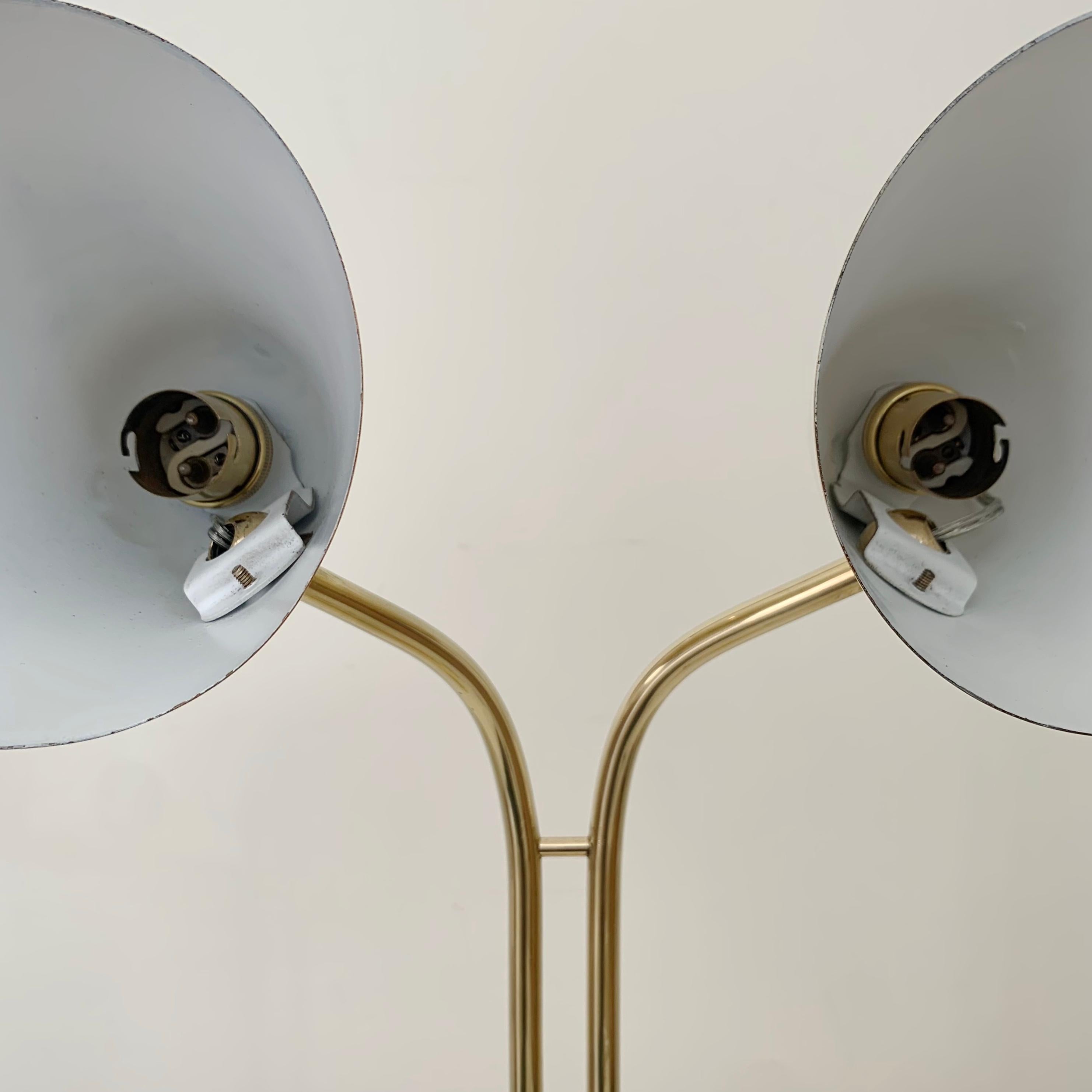 Jacques Biny Rara lampada a due luci regolabile in ottone per Luminalite, c.C. 1950 Francia