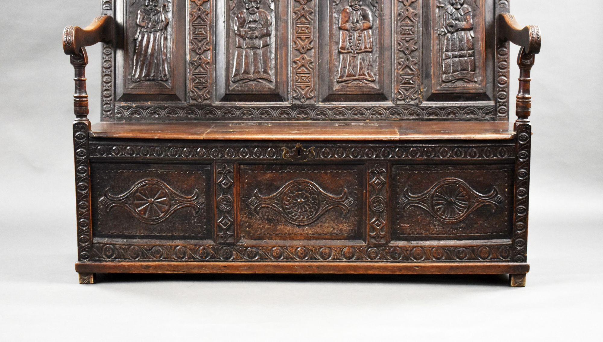 Scatola di Oak Settle del XIX secolo di qualità eccellente