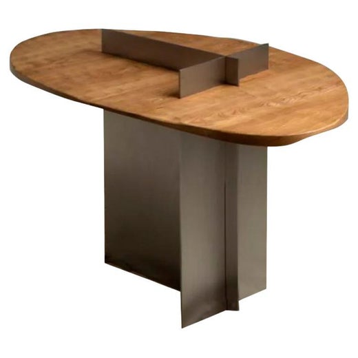 Si tratta di una forza di equilibrio che si manifesta nella materialità del pezzo: legno imperfetto e finiture irregolari in contrasto con linee di acciaio inossidabile impeccabilmente ortogonali.