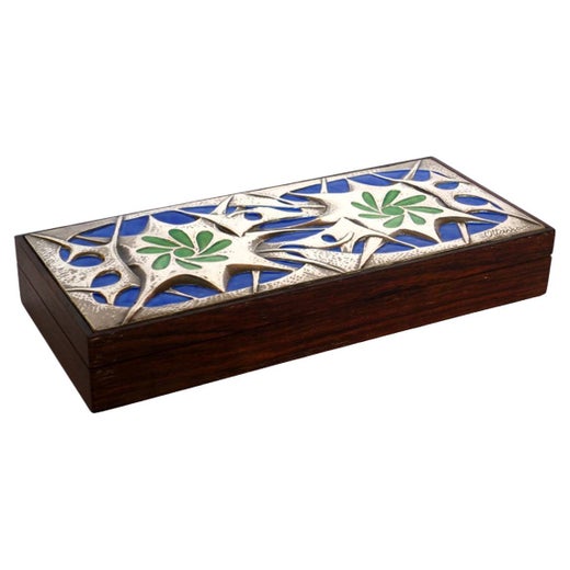 Mostra tuttoScatola per sigarette in Jatoba e placcata in argento della metà del secolo scorso