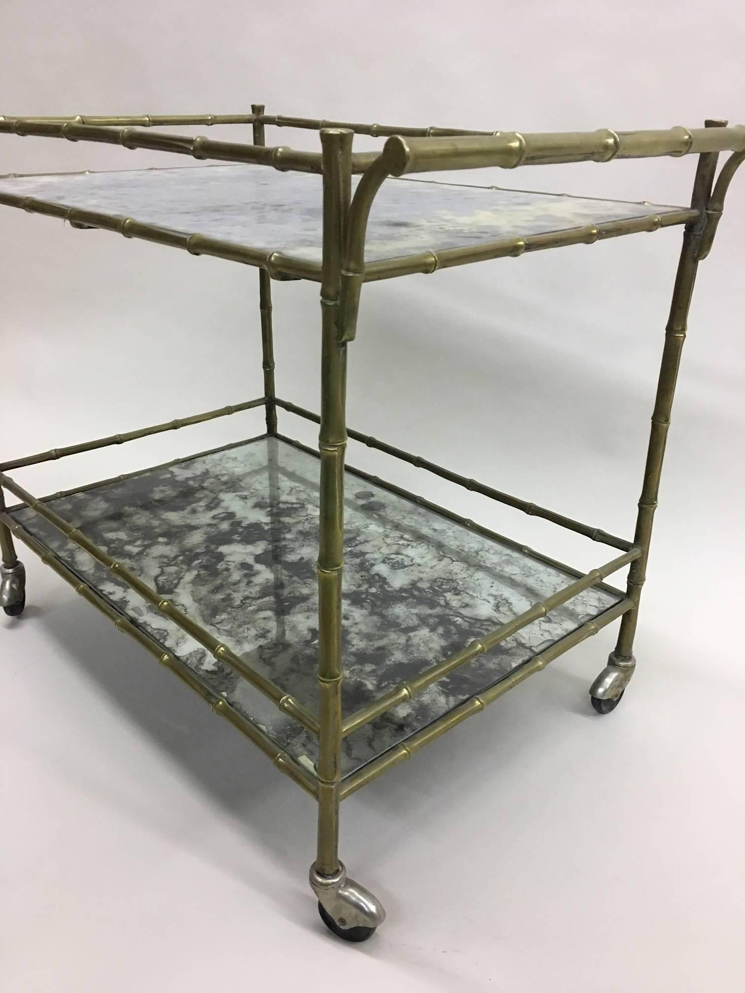 Carrello da bar moderno francese neoclassico in finto bambù e specchio di Maison Baguès