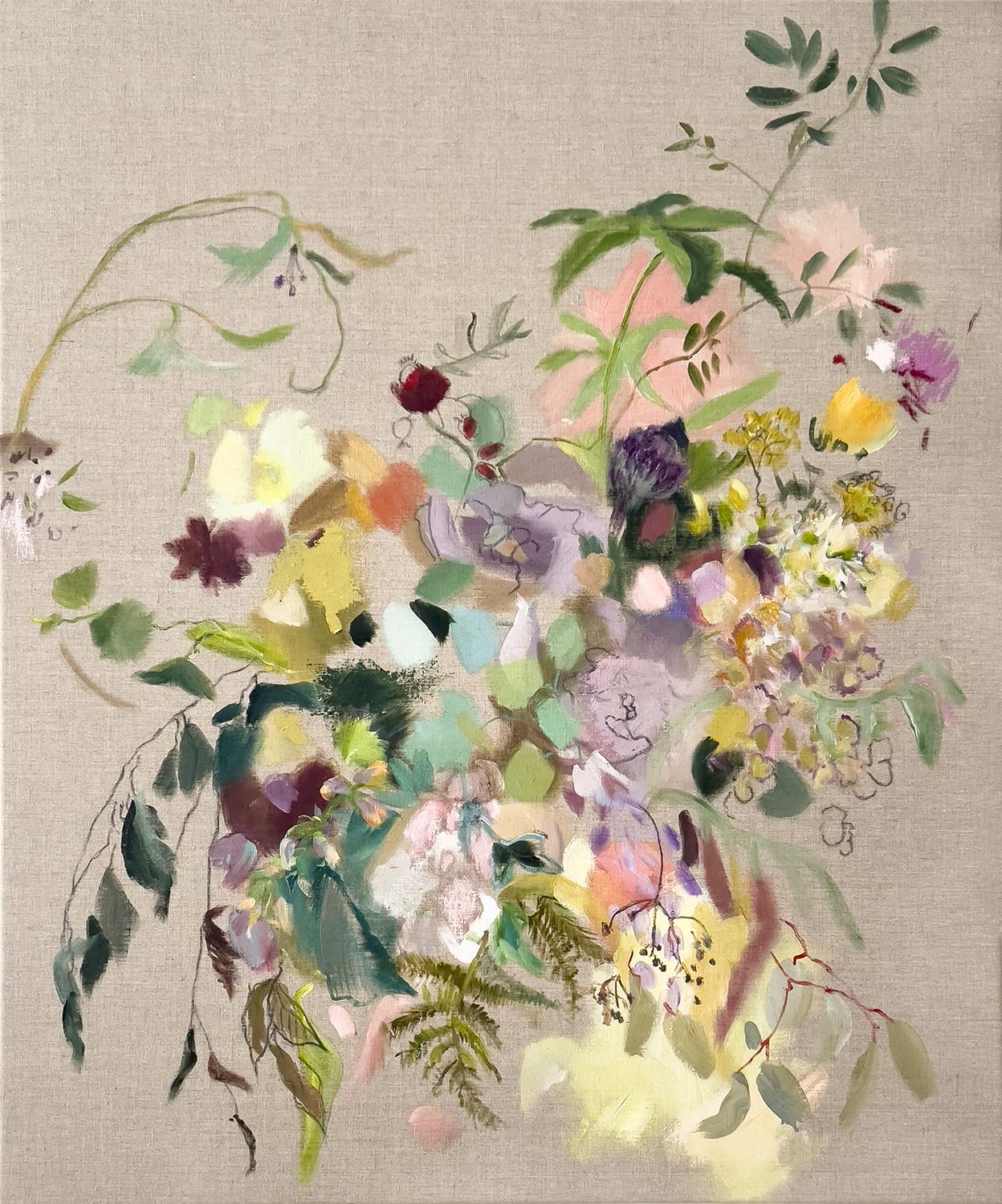 Puramente botanico, 40 x 30 pollici - Pittura floreale astratta multicolore