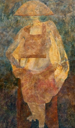 In questa scultura contemporanea a encausto, strati colorati di cera d'api pigmentata suggeriscono un meteorite e formazioni geologiche. Piedistallo in legno fatto a mano incluso nel...
