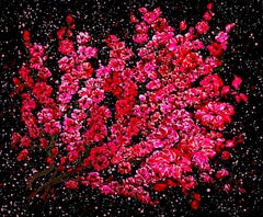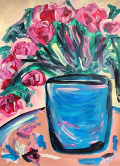 "Rose di perle nel silenzio blu" grande dipinto impressionistico su tela di lino