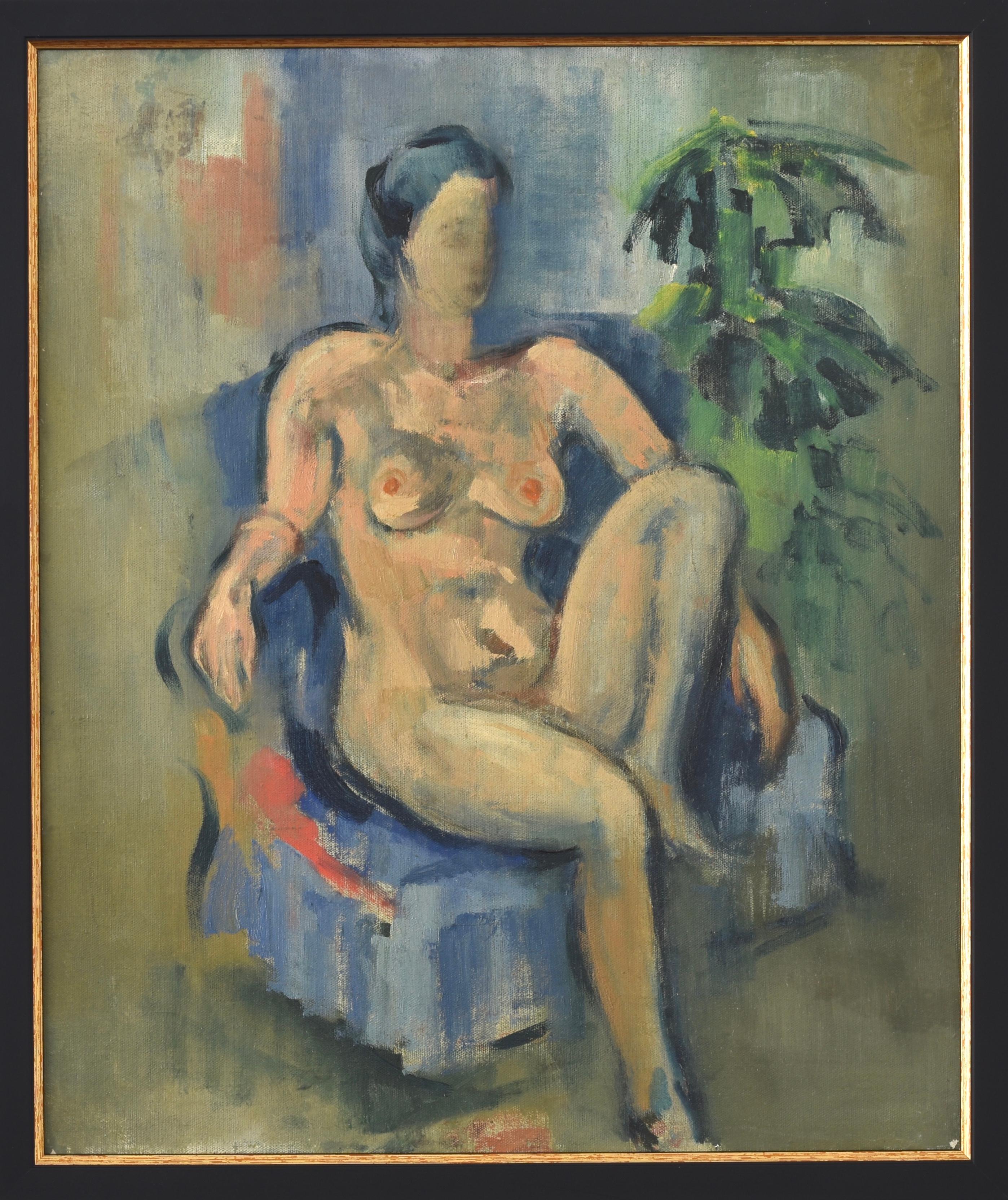 Antico dipinto a olio di una giovane donna in un paesaggio, Picnic nei campi