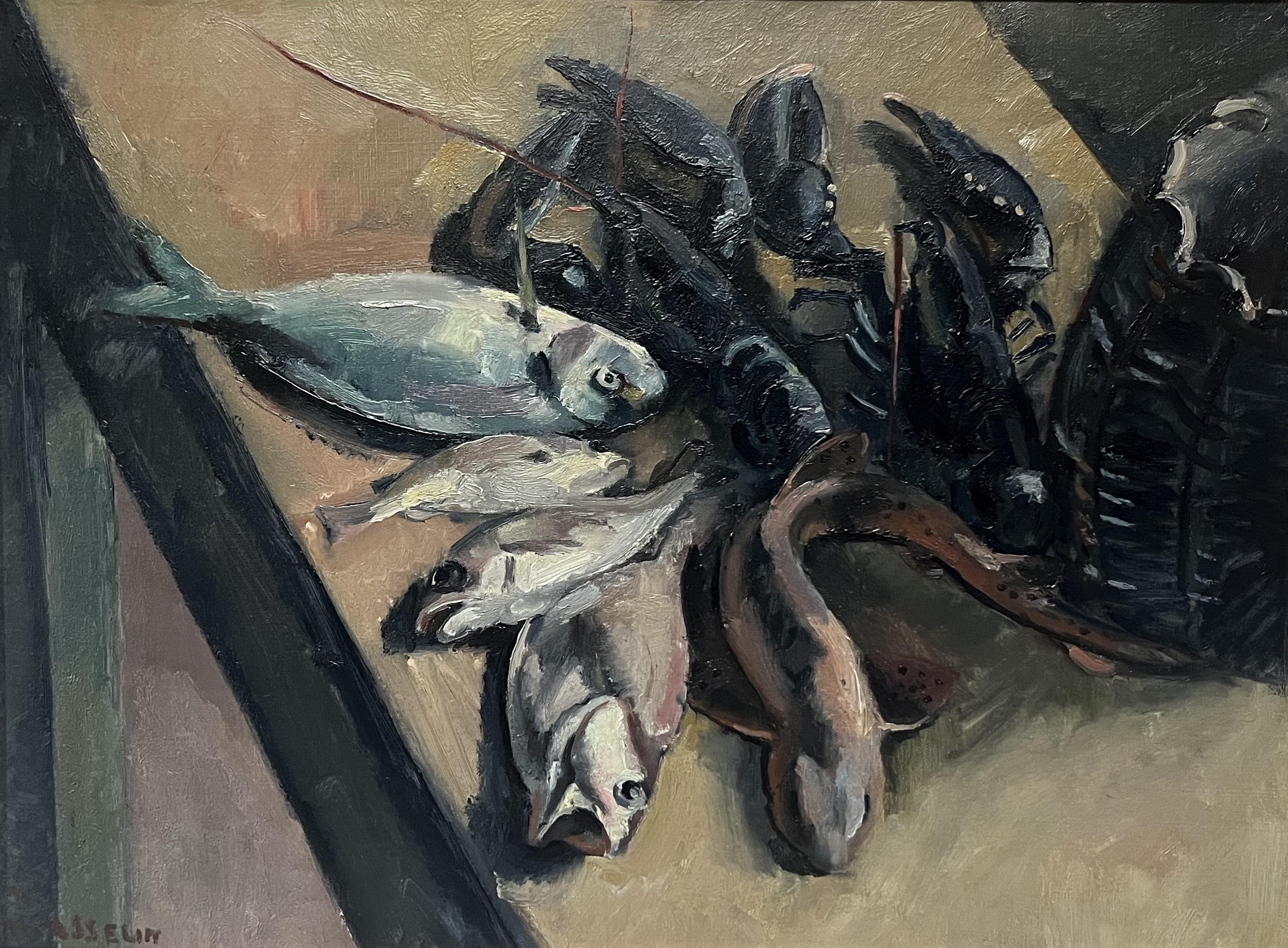 Ohara KosonStampa autentica su Woodblock - Due carpe o carpa e castagna d'acqua - Edizione in tempo reale, 1930