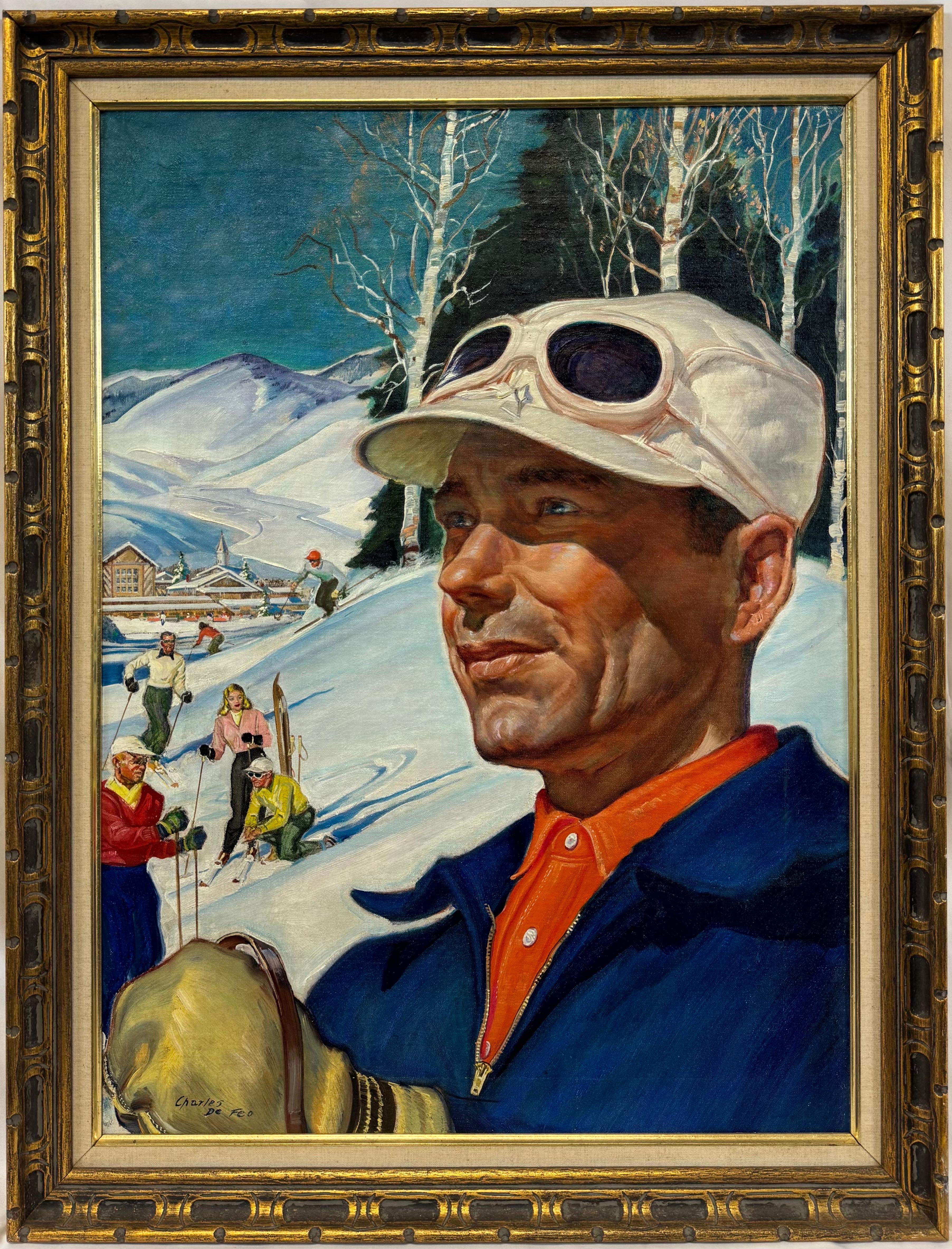 Classico dipinto a olio su tela che raffigura una tradizionale scena di caccia con cavalieri a cavallo accompagnati da segugi che si muovono in un paesaggio di campagna. La composizi...