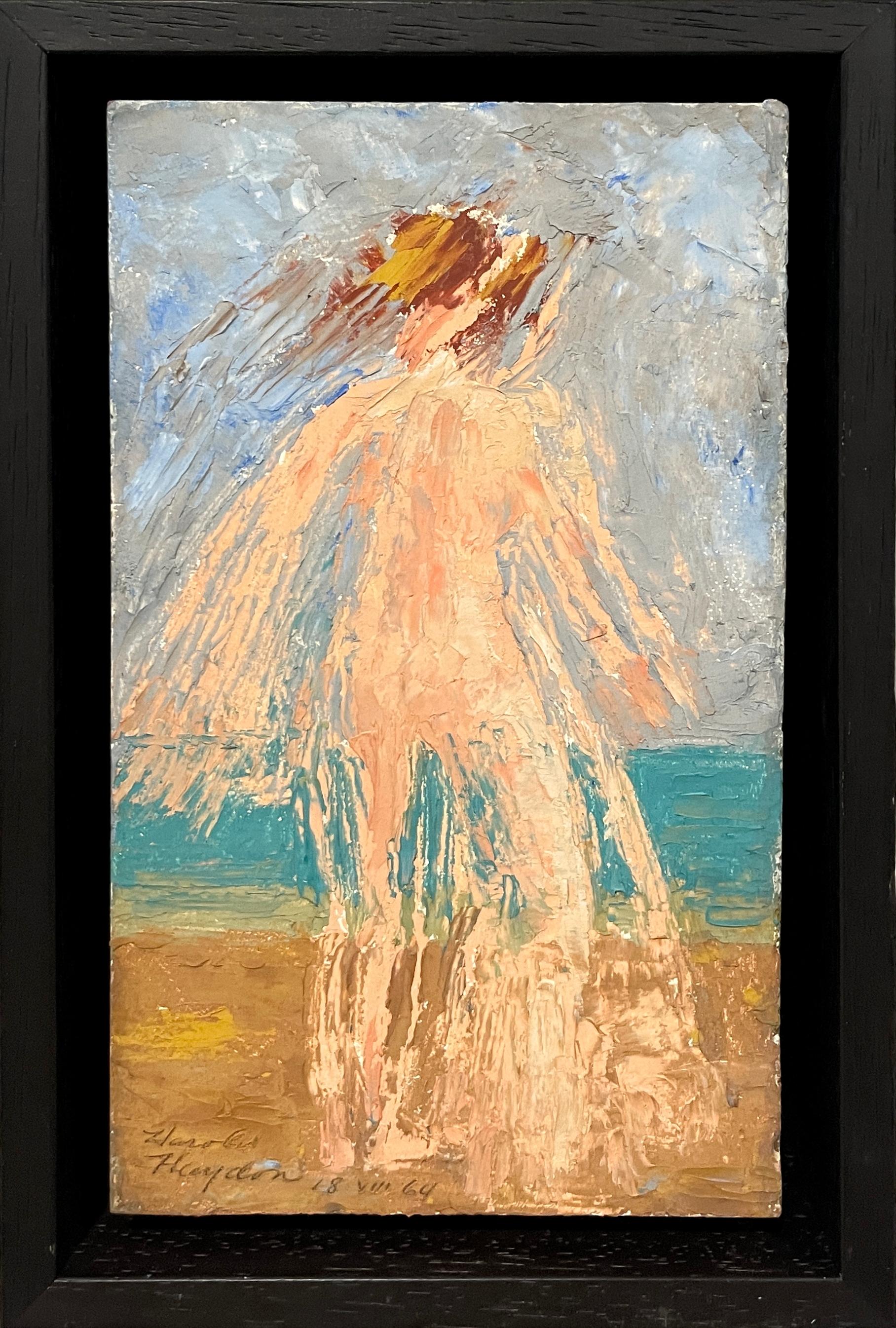 Pittura ad olio post-cubista francese della metà del secolo scorso Lavoratori del raccolto in un campo Schizzo