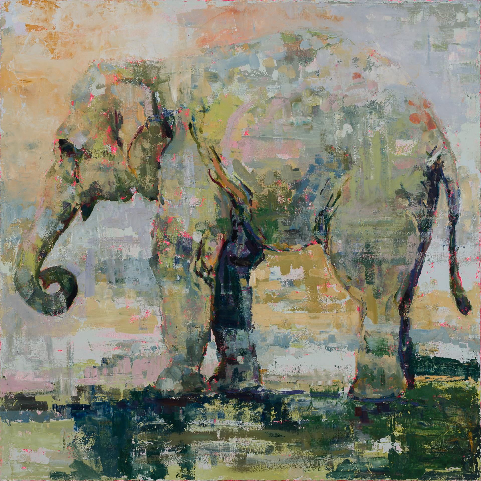 "So It Goes" (2018) Ritratto di elefante espressionista, pittura a olio su tela