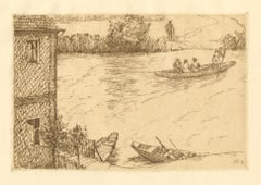 Marthe SAUBIEZ-QUENTRICPaesaggio dipinto a olio, Antique French Impressionist Coastal Painting, Bretagna, 1920's