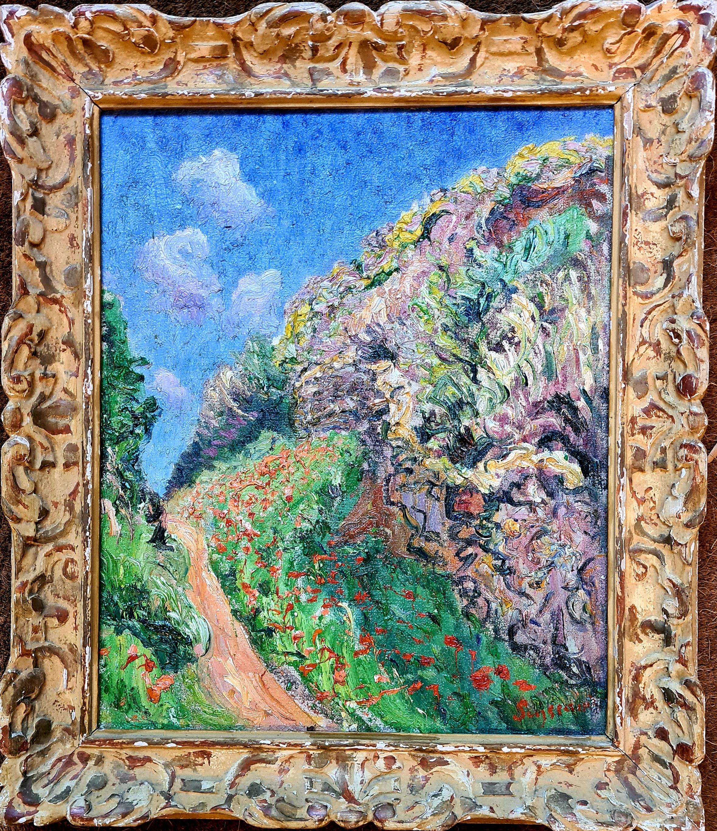 Paesaggio francese fauvista, olio su tela di metà secolo