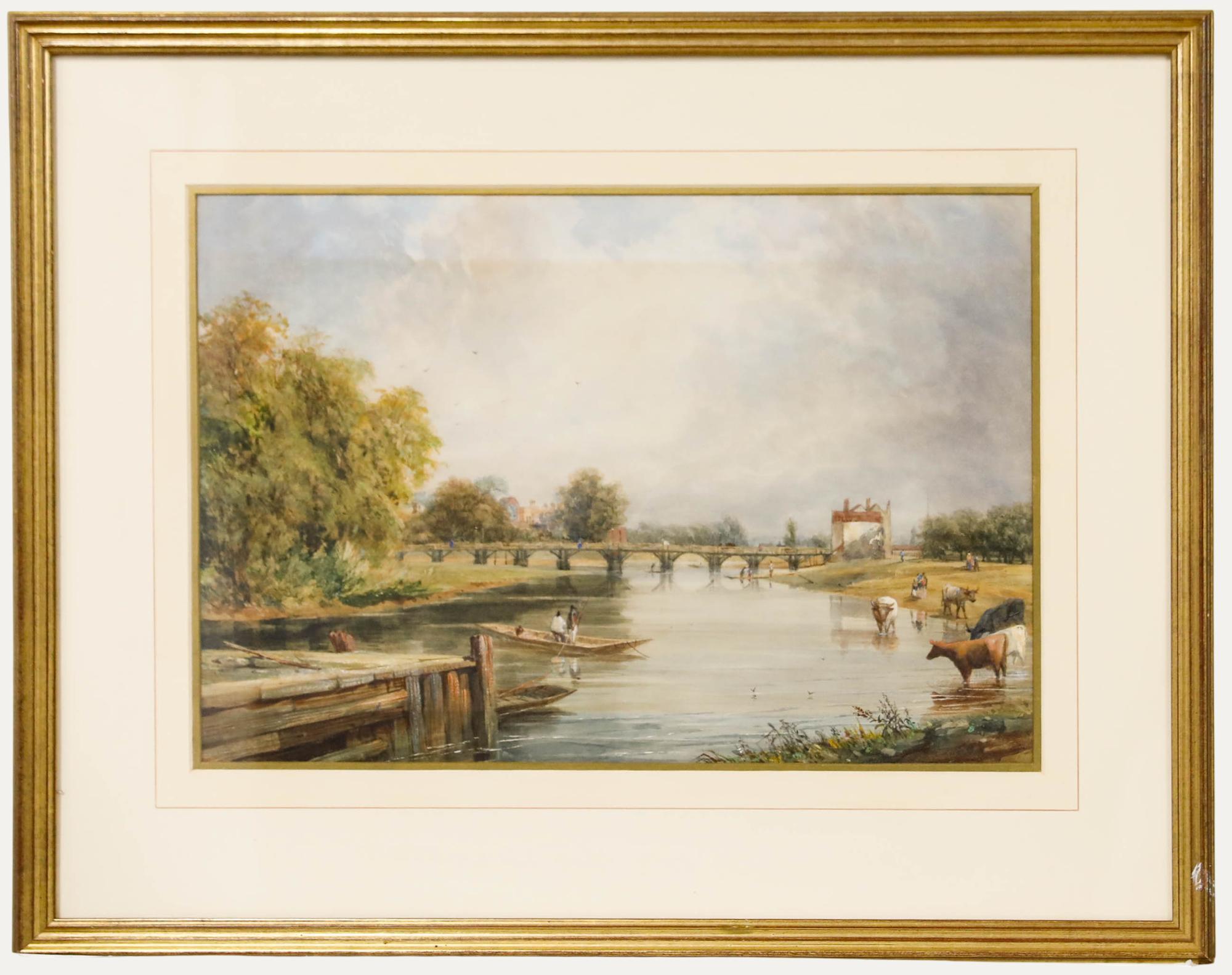 Attraversare il confine di Henry Thomas Gibbs ( Britannico, XIX secolo ) iscritto al verso datato 1894 firmato olio su tela, incorniciato incorniciato: 31 x 49,5 pollici tela: 28 x ...