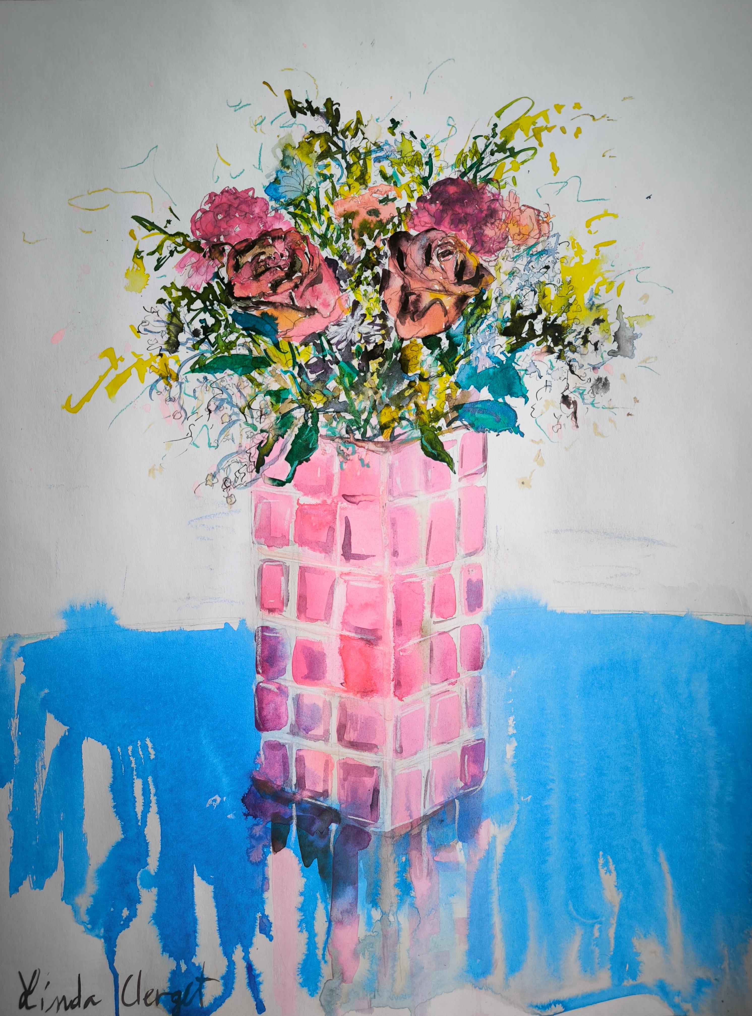 Juanita Bellavance Intervallo botanico, dipinto botanico originale, rosa, verde, astratto, 2026