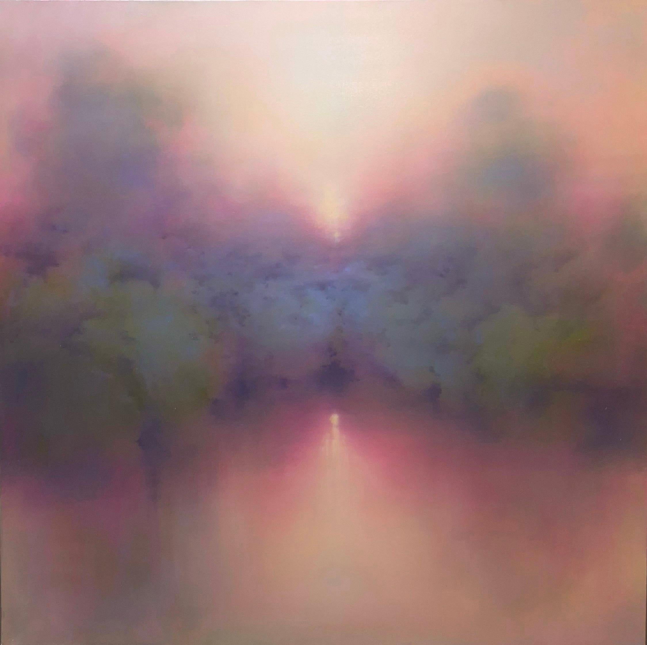 Foresta di alloro - paesaggio minimalista - prato sereno e nebbioso con albero - limitato