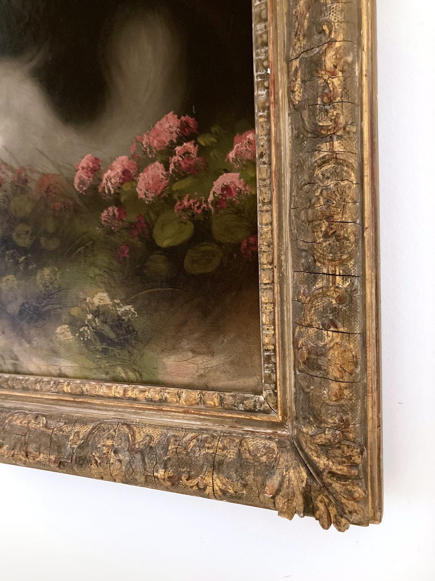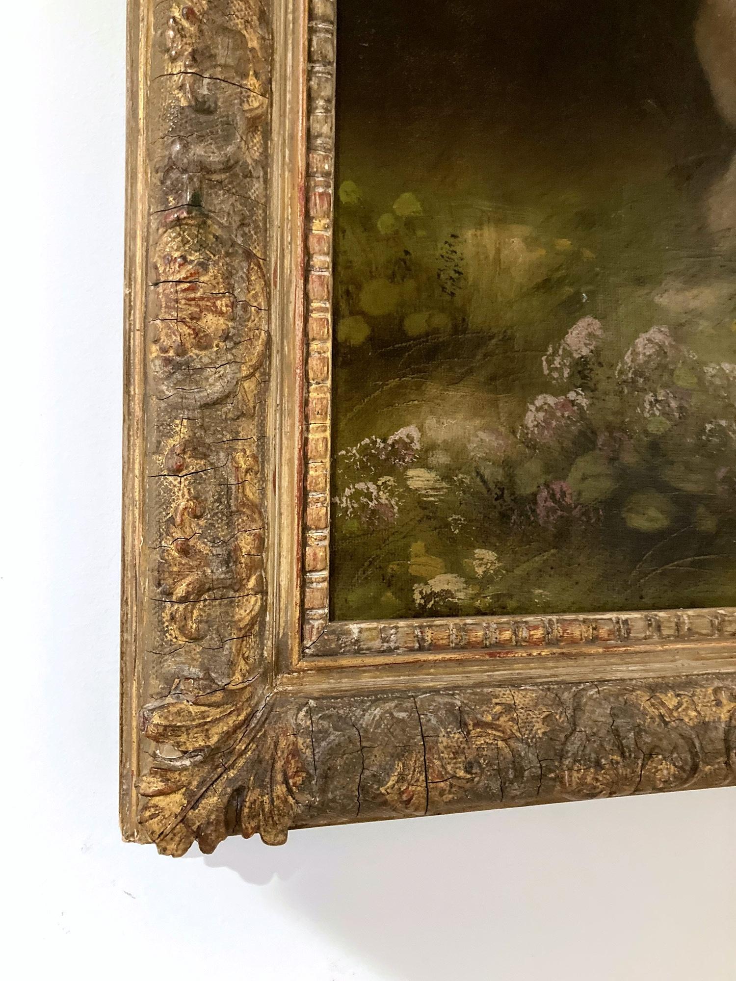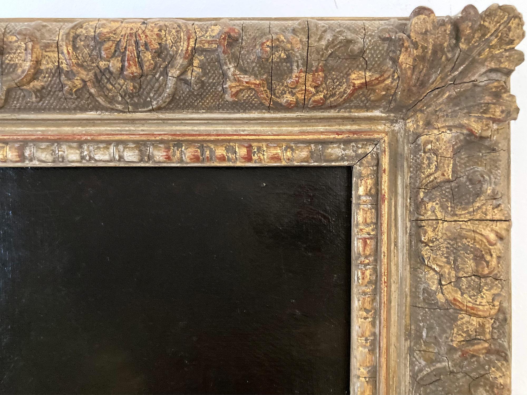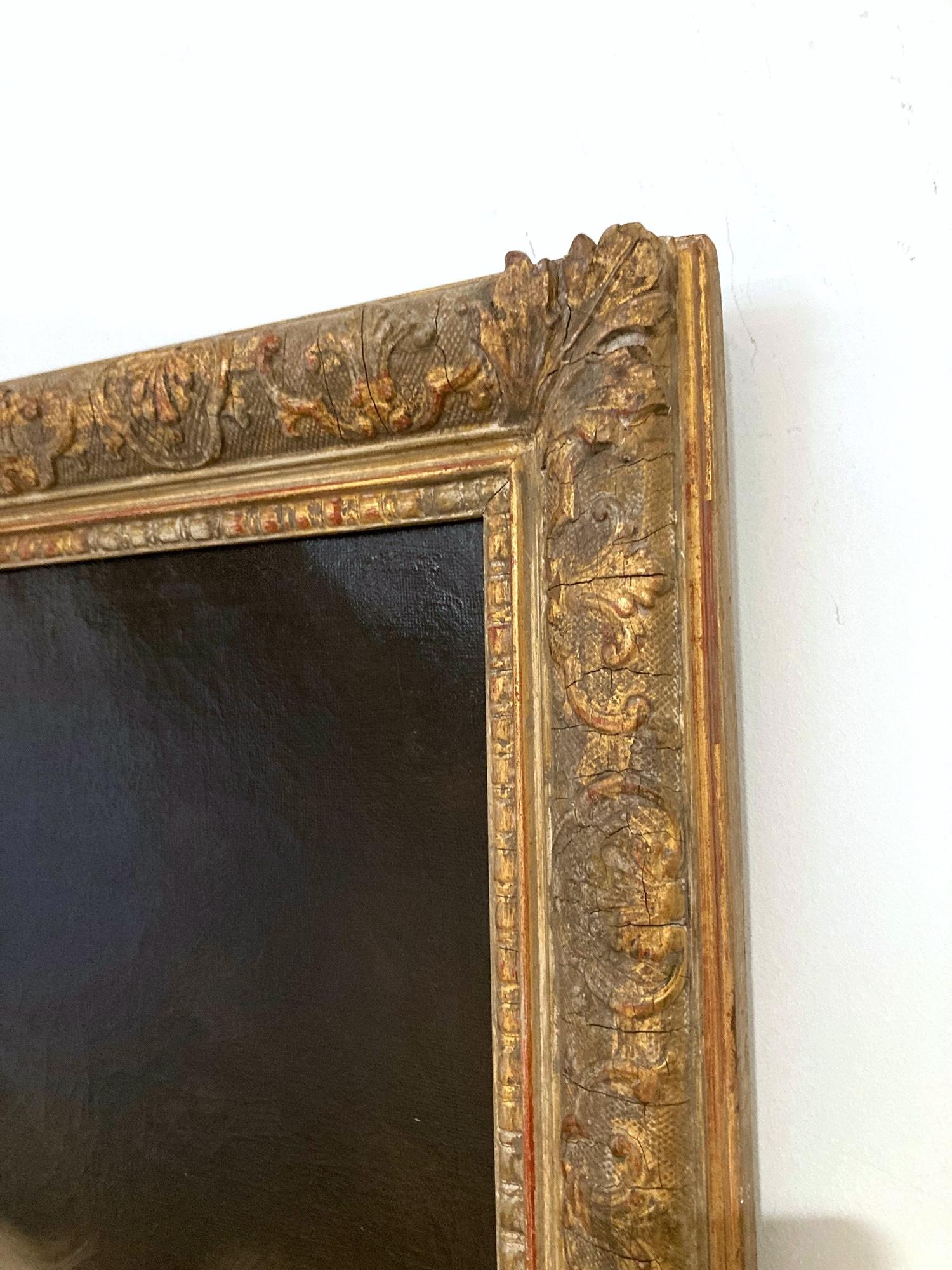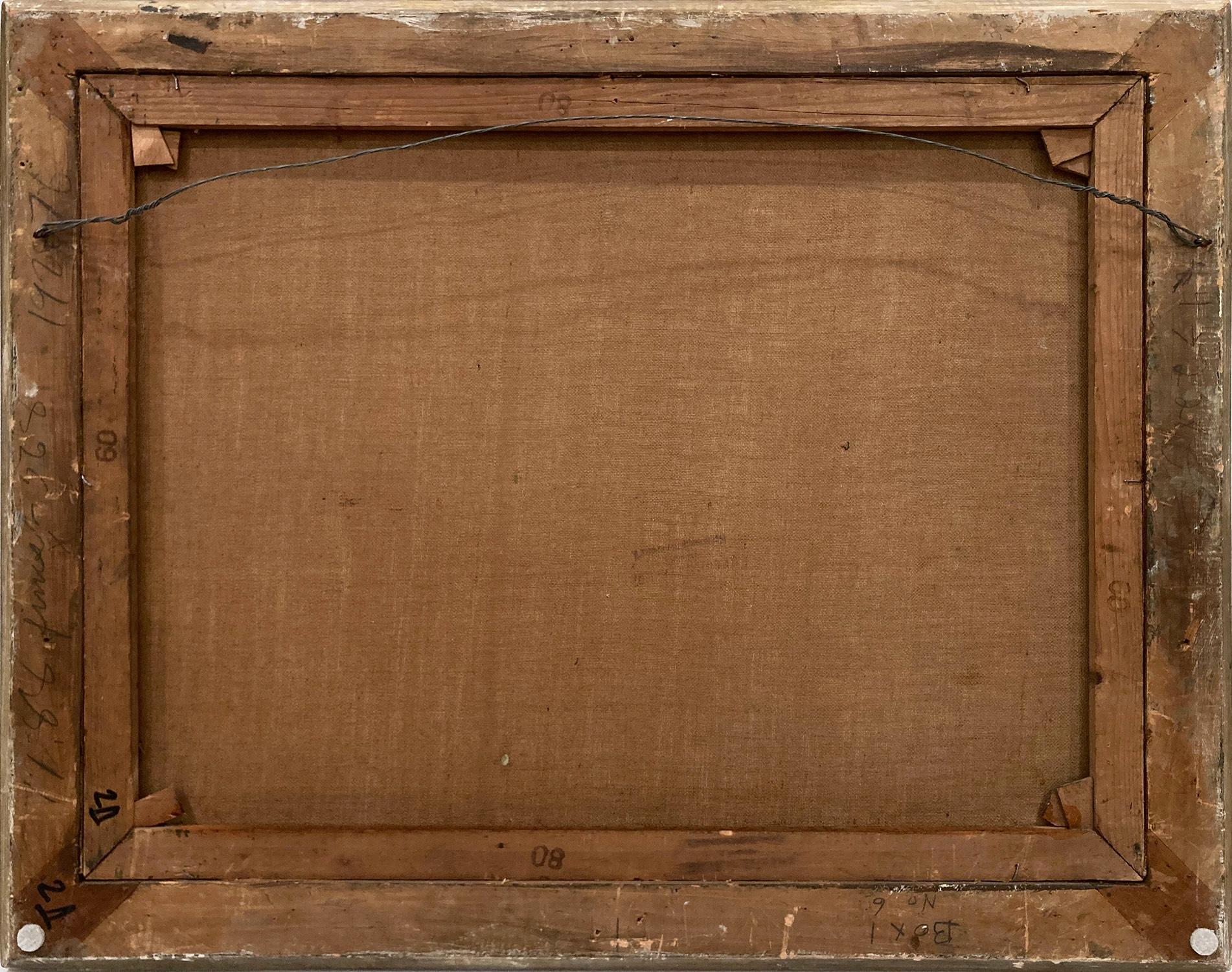 - Condizioni:Con craquelure stabilizzata e sparsa in tutto il testo. Il dipinto e la cornice sono in buone condizioni per l'epoca.