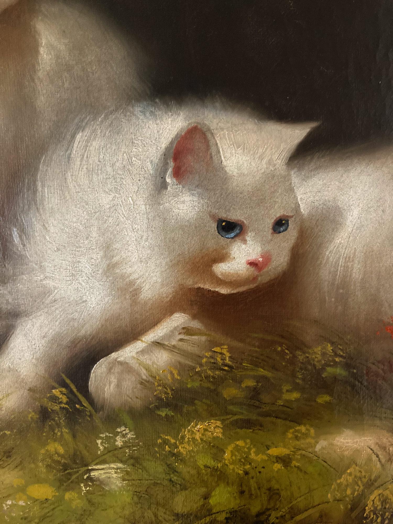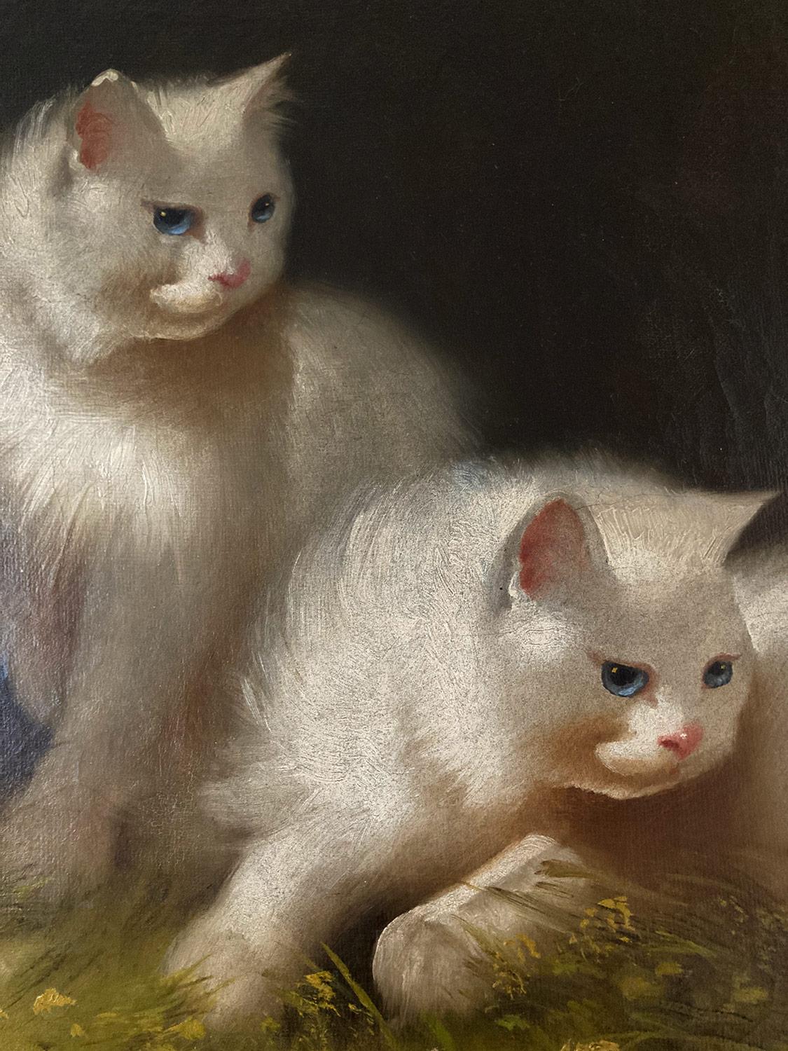 Pittura ad olio del XIX secolo - Gatti con gattino
