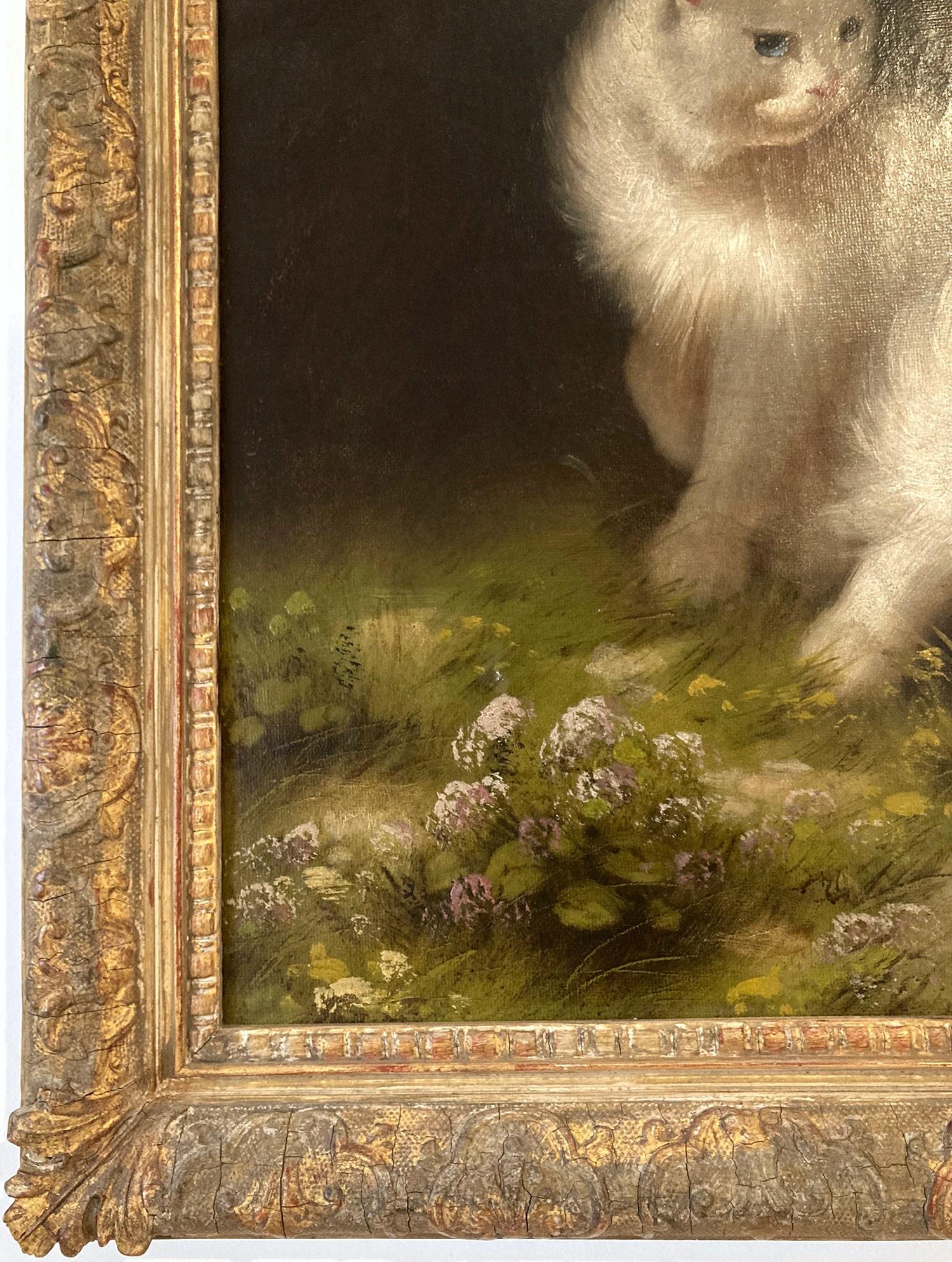 Ritratto di un gatto e di un cane - pittura a olio di genere vittoriano del 1884