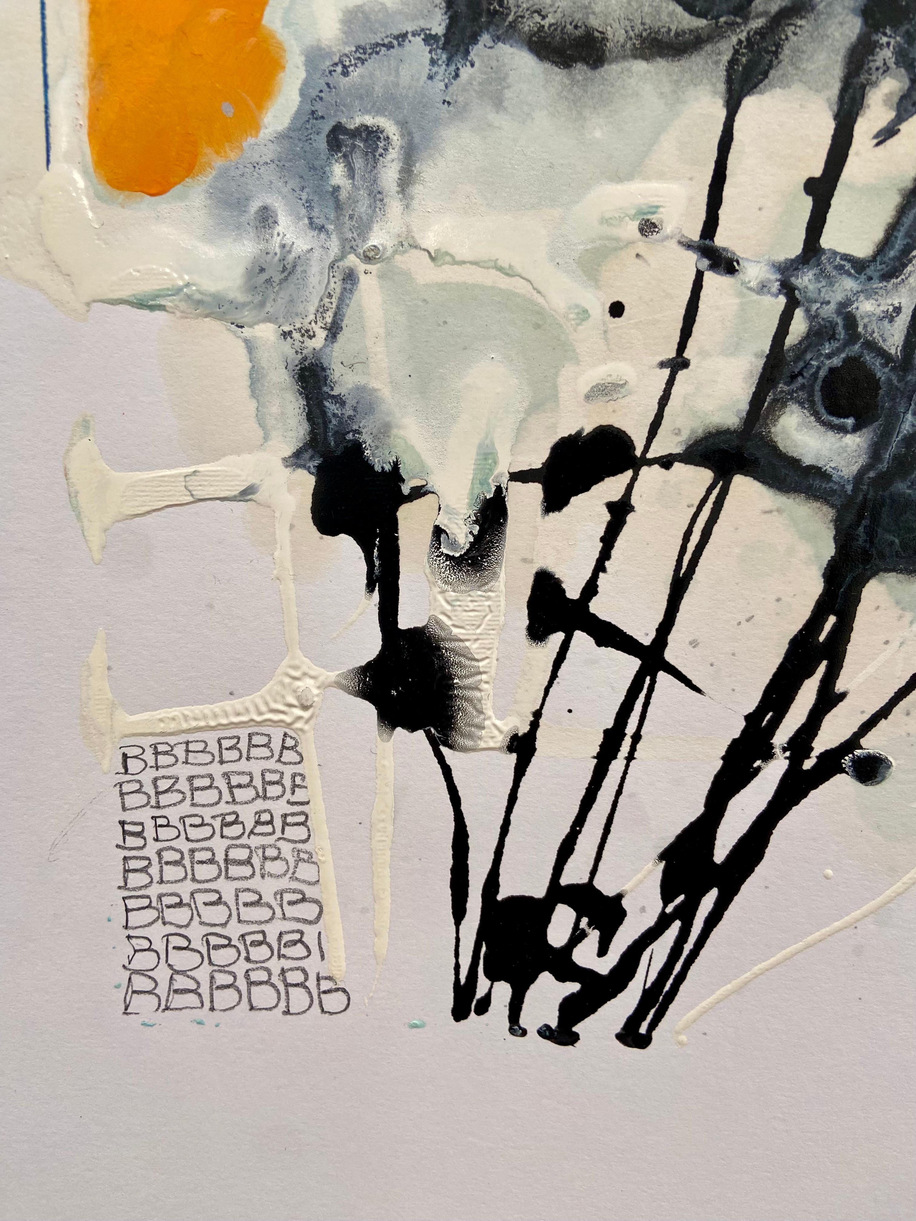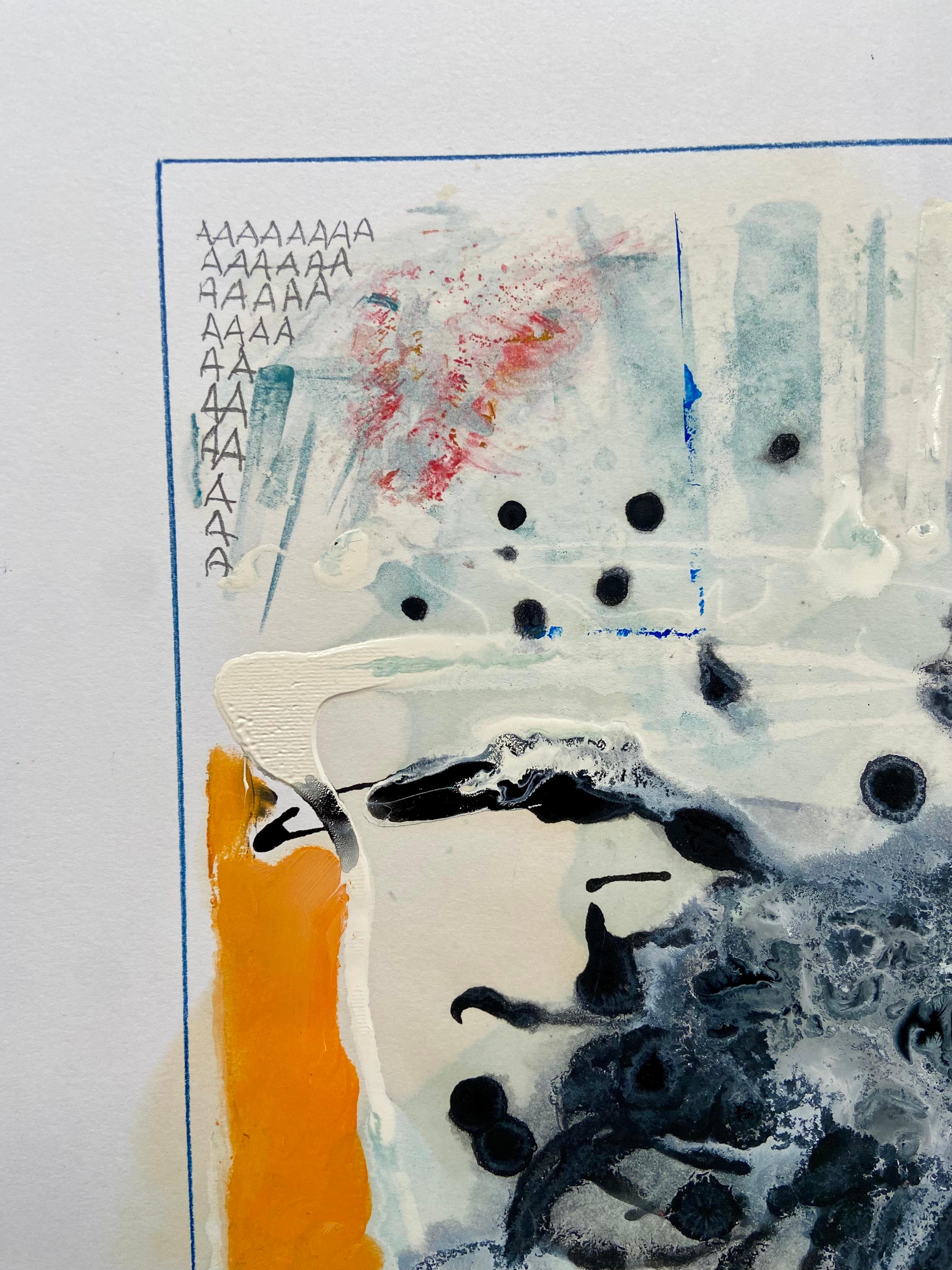 Un'accattivante esplosione di energia irradia questa vibrante opera astratta dell'artista italiano Corrado Ferrante (nato nel 1944, Italia). Eseguita a olio e tecnica mista su carta, questa composizione dinamica presenta una disposizione esplosiva di segni gestuali che emanano dal centro come fuochi d'artificio congelati nel tempo.