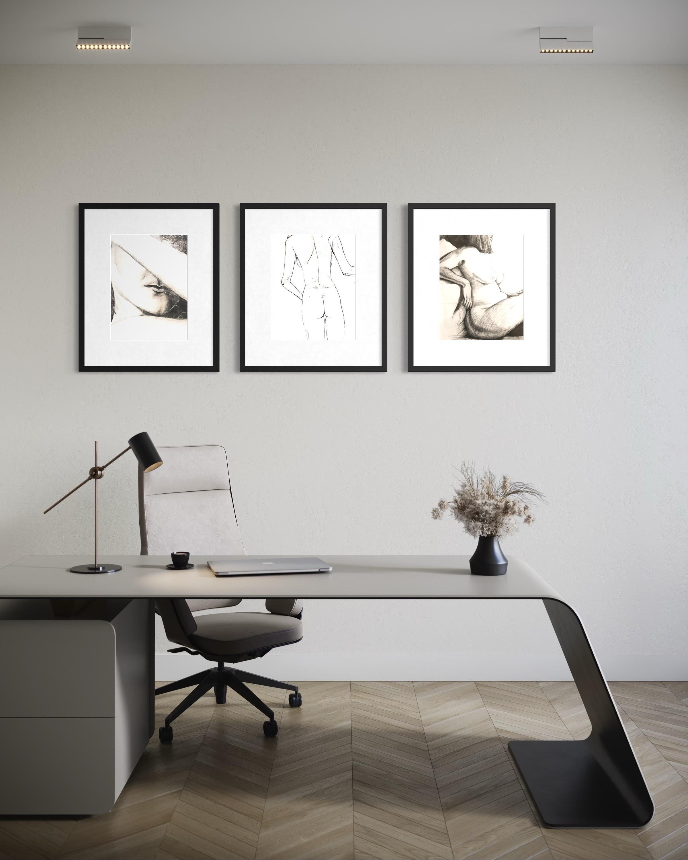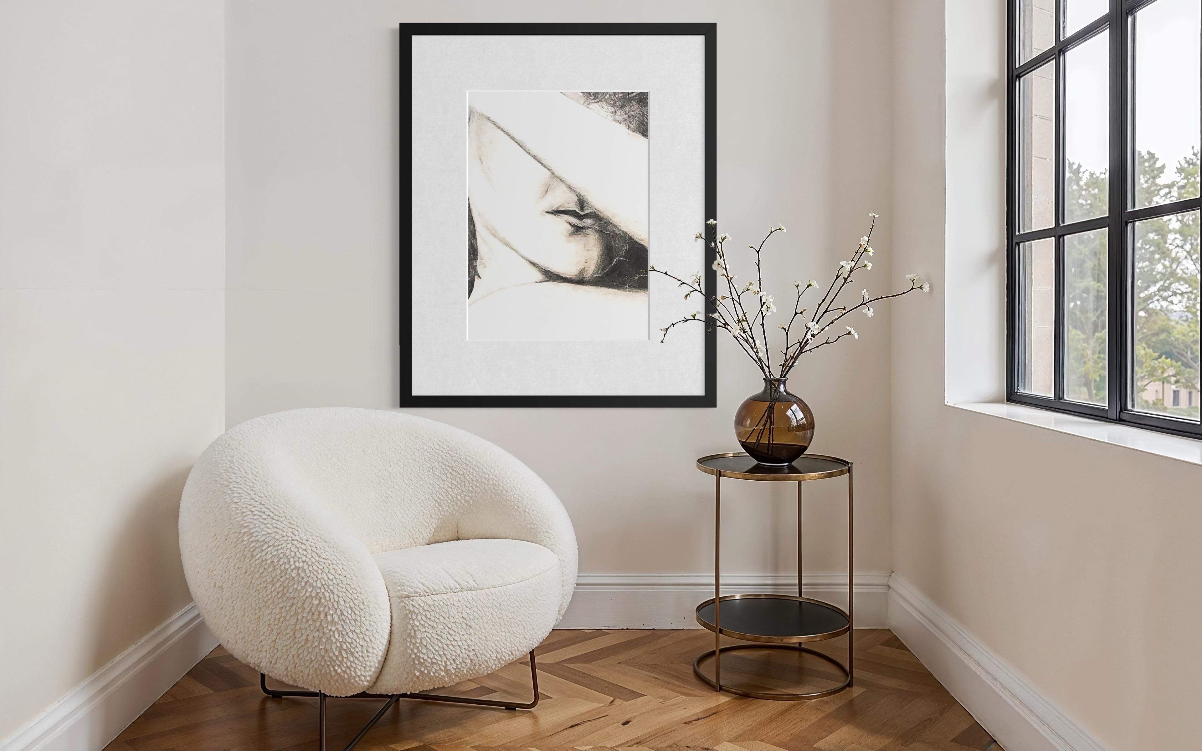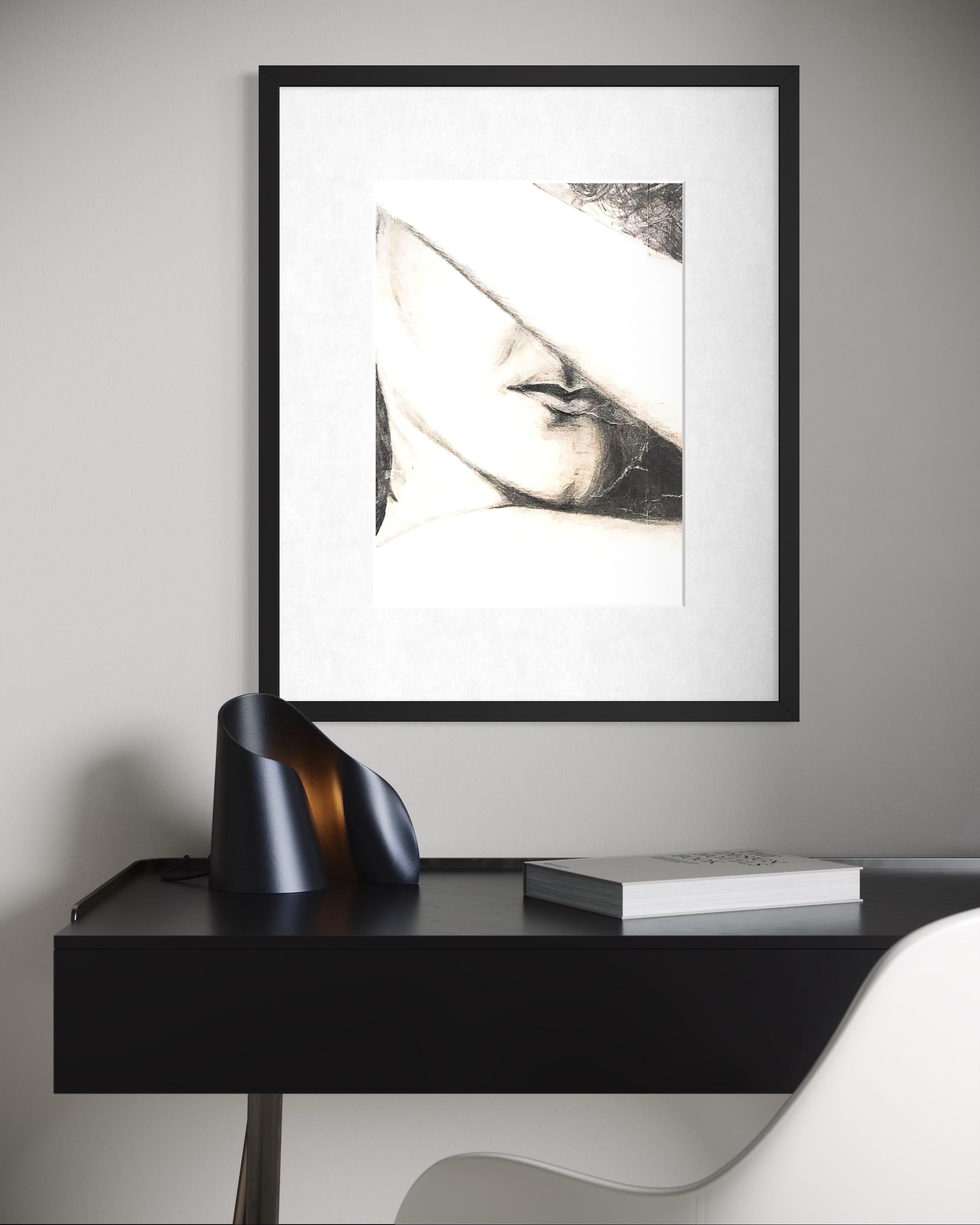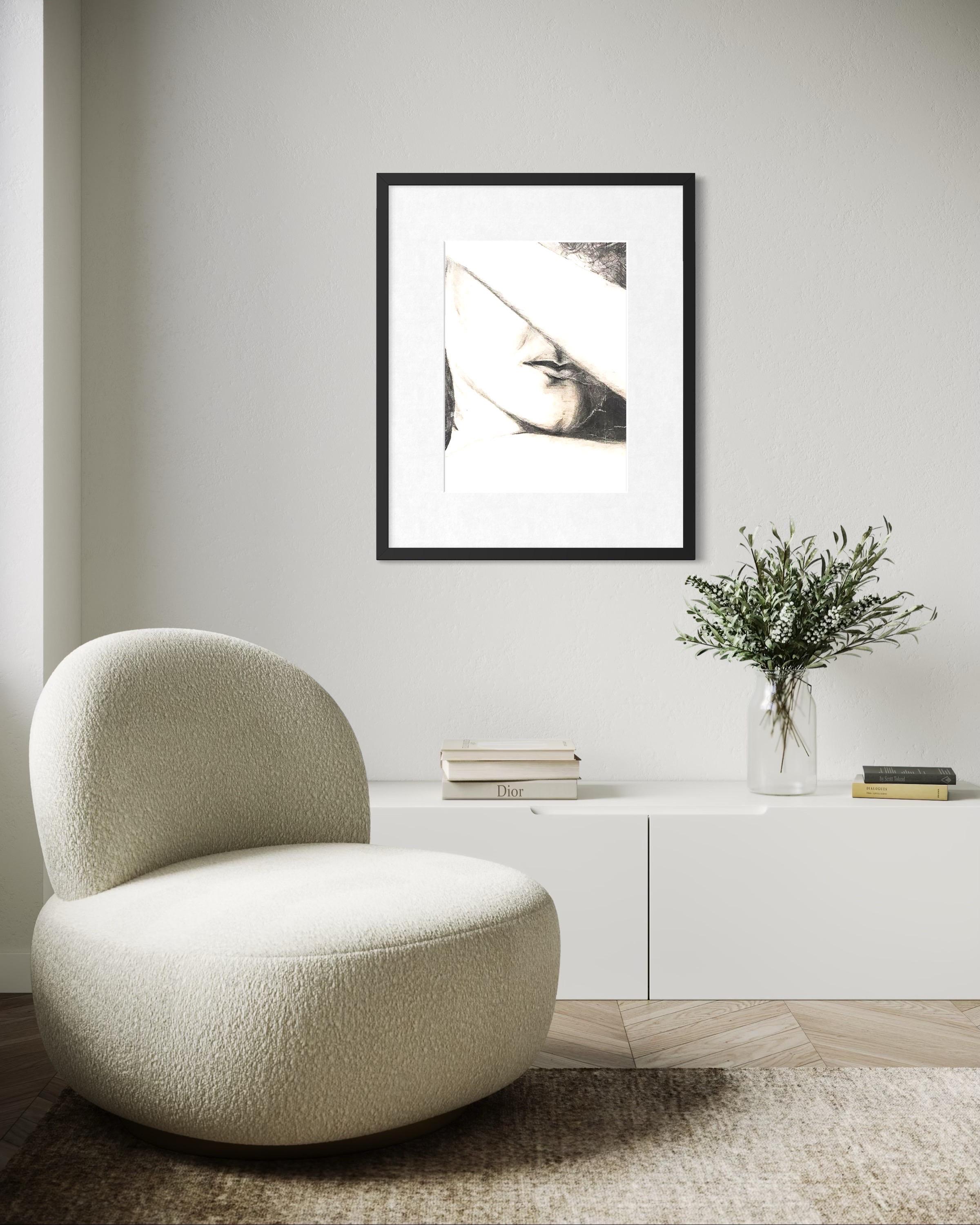 Ogni stampa viene prodotta individualmente, ispezionata con cura e firmata dall'artista, per poi essere spedita in formato piatto con protezione d'archivio. Offerto in edizione aperta, "Study in Grace III" estende l'esplorazione di Michelle Thomas della forma e del sentimento - uno studio sulla moderazione, la tenerezza e la bellezza senza tempo. Nelle sue ombre tranquille e nelle sue linee ammorbidite, troviamo non solo la grazia del soggetto, ma anche la grazia duratura del tempo stesso.