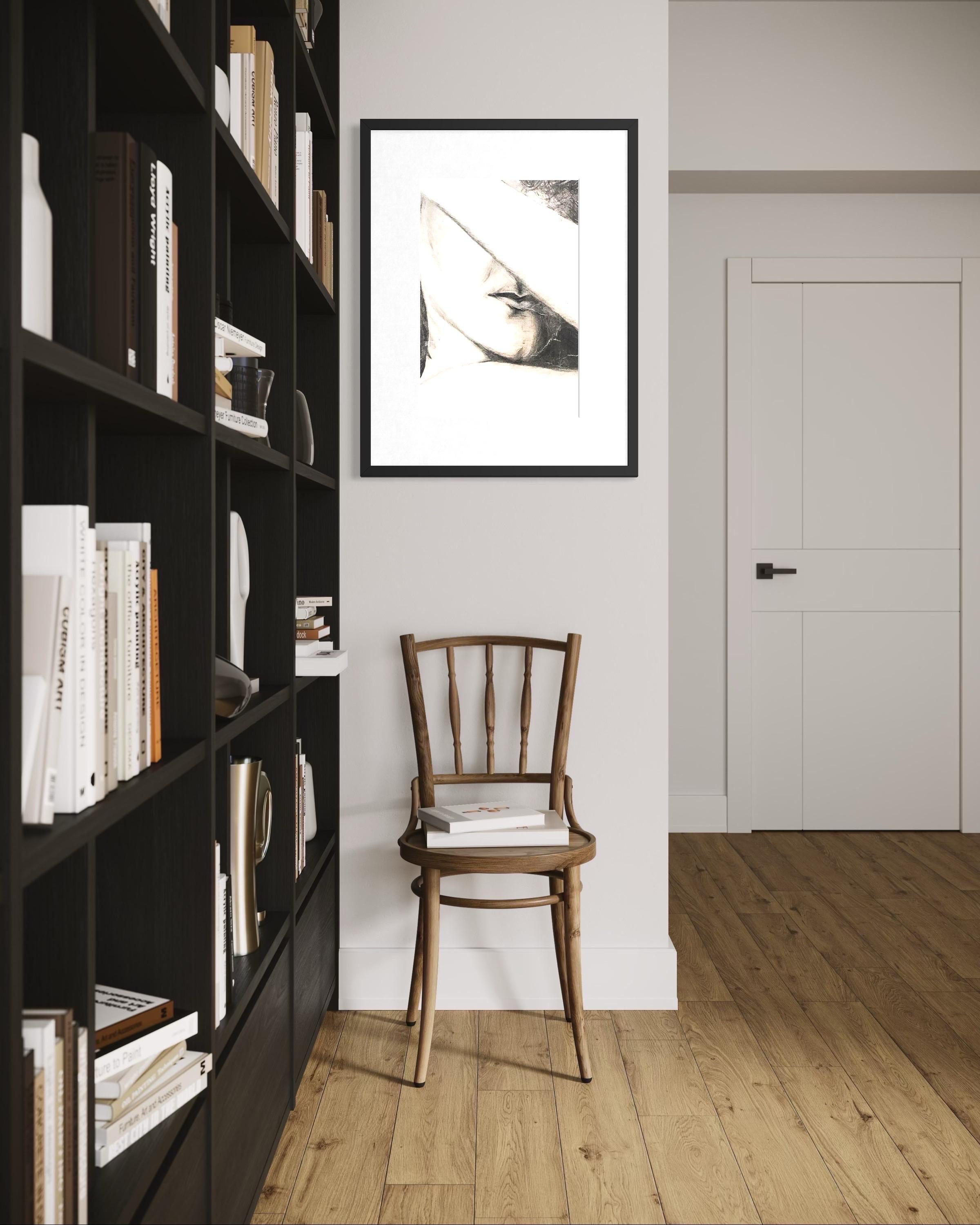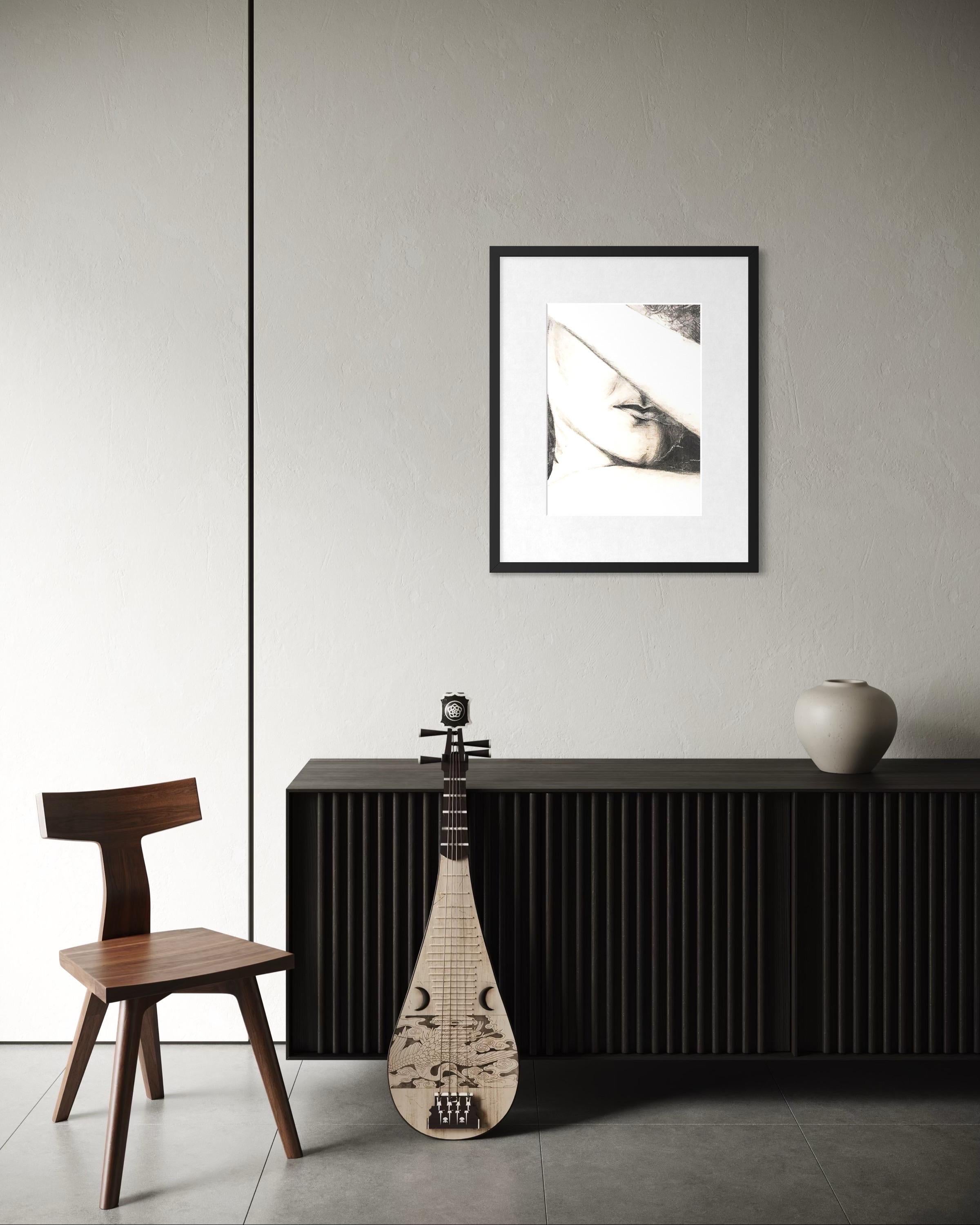 "Study in Grace III" è un ritratto intimo a grafite che onora la tranquilla eloquenza della forma umana - una meditazione sulla bellezza, sulla memoria e sul tempo. Disegnato più di quarant'anni fa, il pezzo porta nella sua superficie i segni delicati sia dell'intenzione artistica che del passare degli anni. Lievi pieghe e sottili crepe della carta si intrecciano ora nell'immagine come sussurri di esperienza, trasformando l'età in consistenza e l'imperfezione in autenticità.