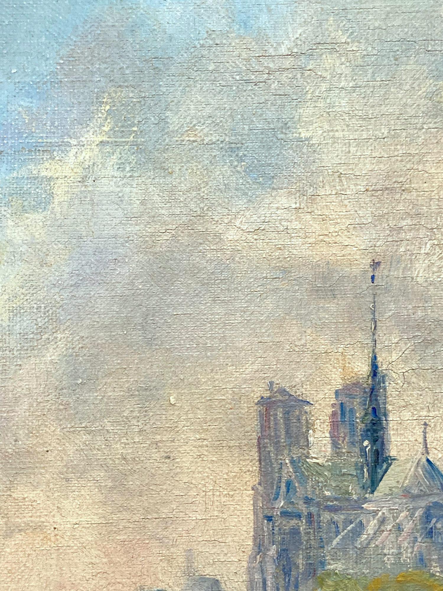 Andre Franchet"Una veduta di Notre-Dame" Pittura a olio post-impressionista Scena di strada pariginaMetà del XX secolo
