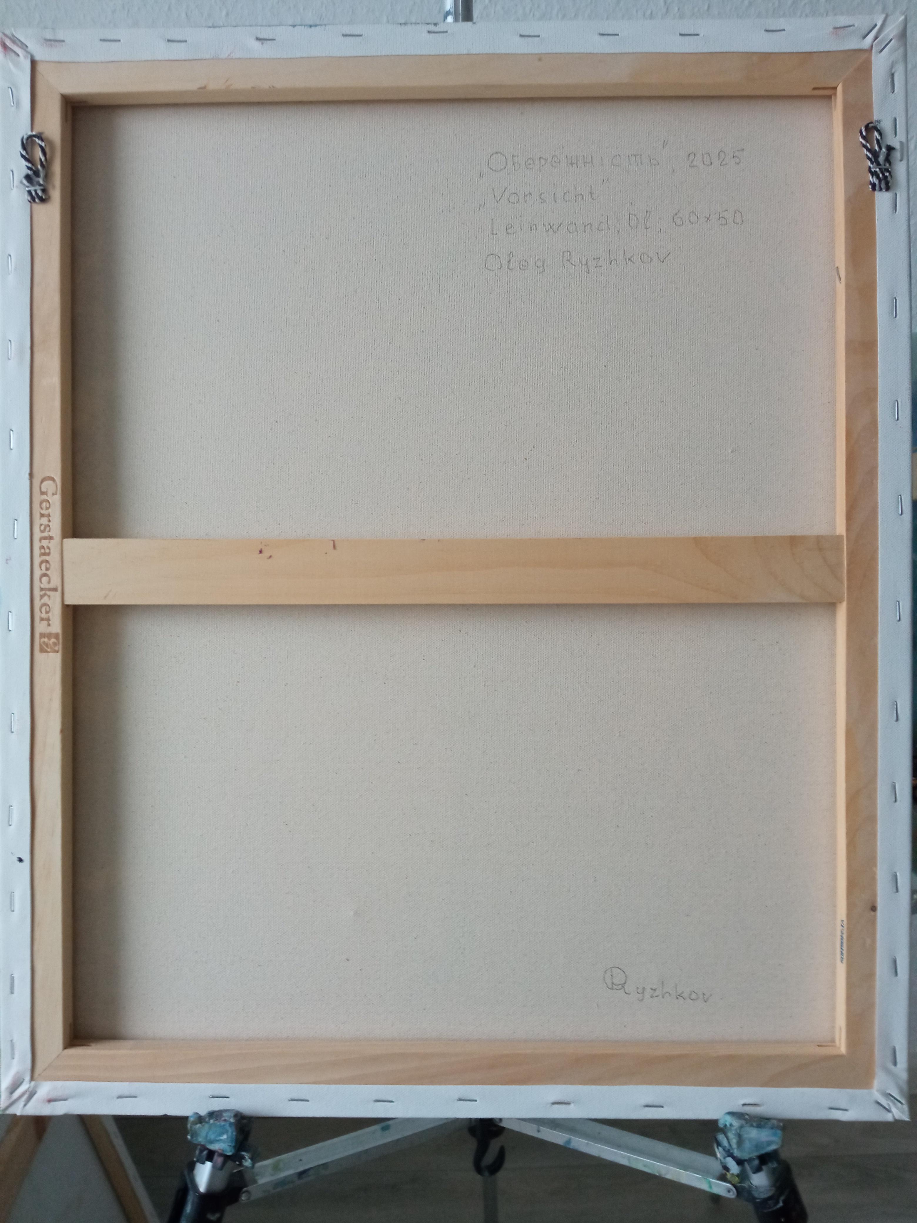 Nel dipinto "Caution", l'artista cattura il delicato stato emotivo di una giovane donna circondata da un turbinio di petali in fiore. Il suo sguardo espressivo è pieno di attenzione, come se percepisse qualcosa di invisibile ma significativo. La morbida foschia dello sfondo, che passa dall'azzurro del cielo alle calde tonalità rosa-dorate, sottolinea la fragilità del momento e la vulnerabilità della sua natura.