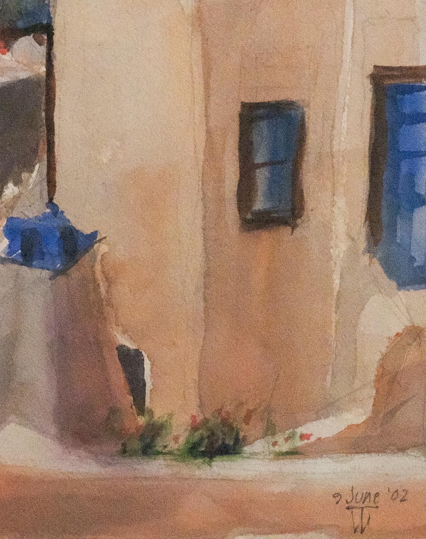 Tom Shefelman"Pyrgos Beyond" Acquerello di Townes in Grecia Architettura Montagne2002