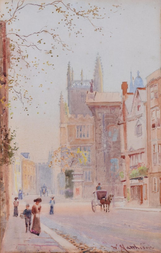 William Matthison nacque nel 1853 fuori Birmingham. An He era un acquerellista vittoriano. Matthison frequentò la King Edward's School in città. Imparando a disegnare alla Birmingham Central School of Art, divenne allievo dell'artista di Birmingham Edward Watson. Diventato artista professionista nel 1875, Matthison si trasferì nell'Oxfordshire nel 1883. Nel 1902 si trasferì a Park Town a Oxford e fu incaricato da Robert Peel di dipingere più di 70 vedute dell'Università di Oxford, che furono trasformate in cartoline. Al prezzo di sette per uno scellino, erano disponibili solo presso E Cross di Pembroke Street. Anche Raphael Tuck & Sons gli commissionò delle scene di Cambridge per le loro cartoline. Le sue vedute di Oxford furono poi utilizzate in 50 Watercolor Drawings of Oxford pubblicato nel 1912 da Alden & Co.