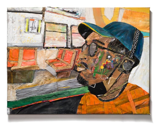 Eustace Mamba"Brick" Ritratto di uomo realizzato con carta stratificata, tela cucita e pietra2024