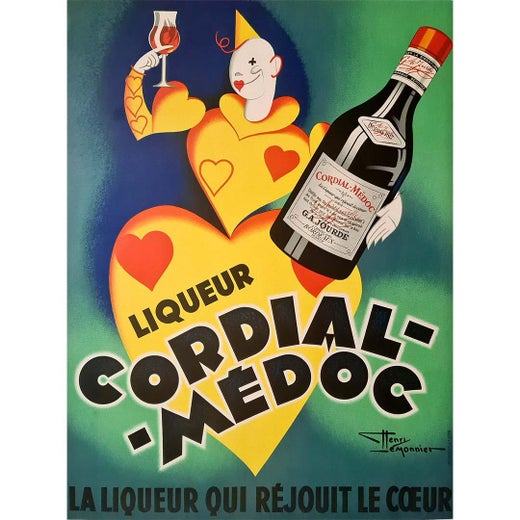 Articoli simili a Circa 1940 Poster originale di Henry Lemonnier - Liquore Cordiale - Médoc