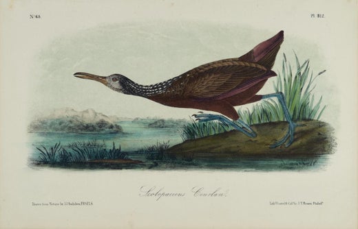 John James Audubon (1785-1851) era un naturalista e artista. All'inizio, prima della pubblicazione della sua famosa opera "Gli uccelli d'America", non ebbe successo finanziario, passò del tempo nella prigione dei debitori e una volta accoltellò un investitore scontento per autodifesa. Tuttavia, la sua ossessione per gli uccelli e per l'arte lo ha spinto a perseverare nel suo obiettivo di documentare tutti gli uccelli d'America attraverso i suoi dipinti ad acquerello e a pubblicare le sue opere perché tutti possano goderne. Le prime illustrazioni di Audubon sono state pubblicate in un grande folio a forma di elefante. A causa del loro costo, venivano acquistati in numero piuttosto ridotto dai ricchi. Per raggiungere un pubblico più vasto, Audubon, con l'aiuto dei suoi figli e di J. T. Bowen, pubblicò una versione litografica in formato ottavo, molto più accessibile.