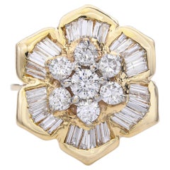 Anello in oro giallo e bianco 14k da 2,45 carati con grande cluster di diamanti a piramide, misura 7