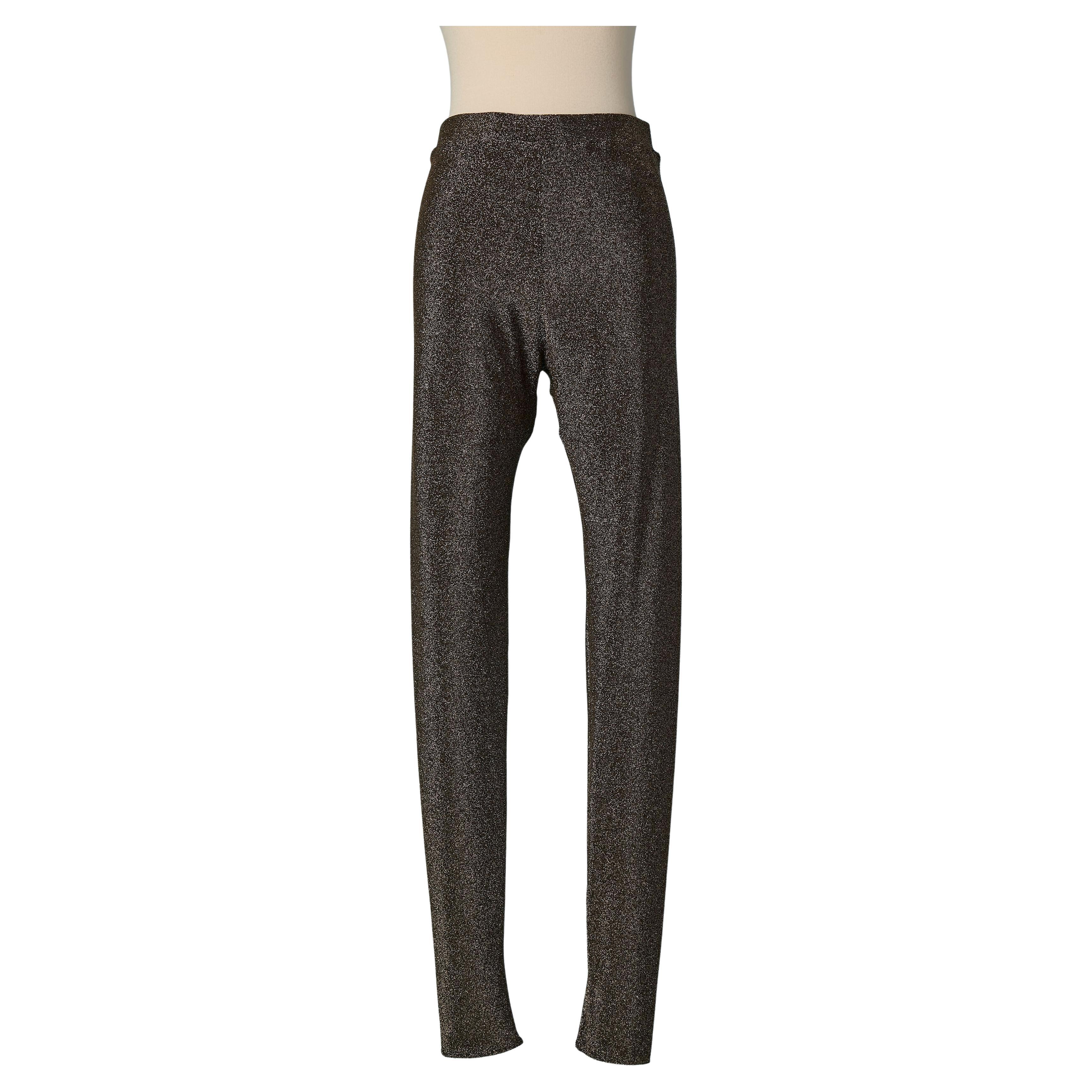 Pantaloni in maglia di lana grigia. Tasca su entrambi i lati con chiusura a zip. elastico in vita.