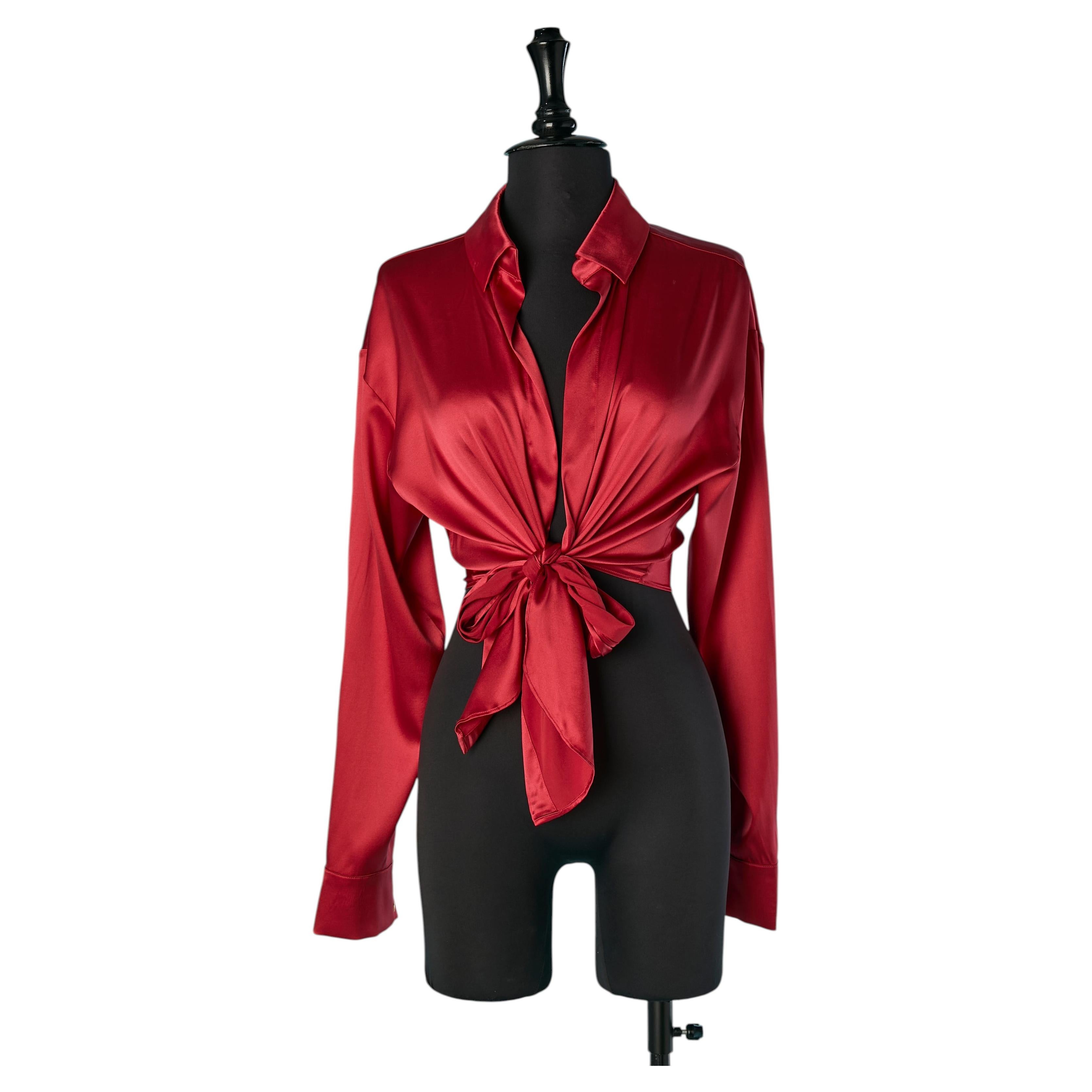 Trench doppiopetto in organza marrone. Chiusura con bottoni e asole con marchio sul davanti e sui polsini. Tasca su entrambi i lati. Cintura con chiusura a fibbia in pelle. Box-pleat...