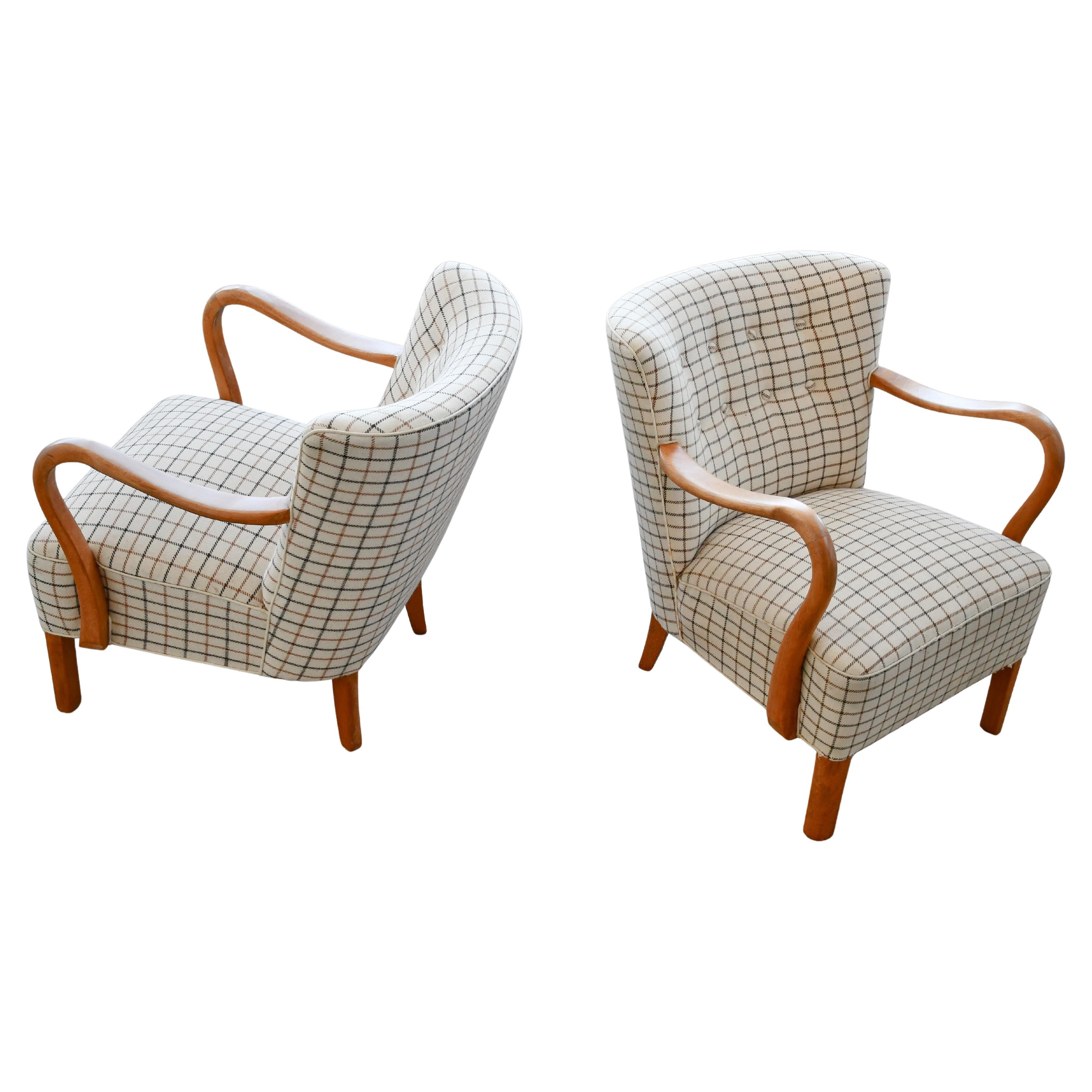 Coppia di poltroncine danesi con schienale basso degli anni '40 di Alfred Christensen con braccioli aperti