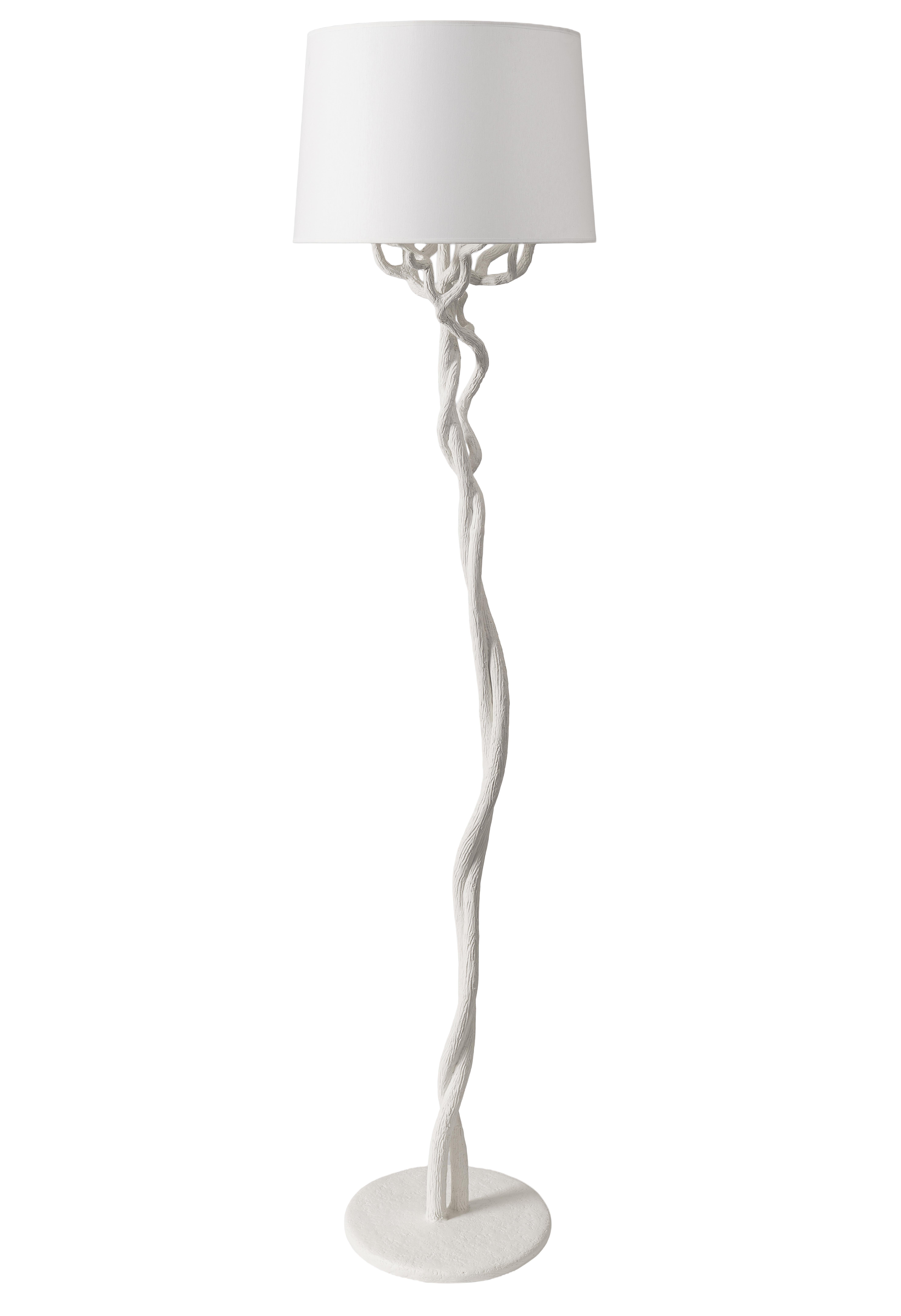 Lampada da terra moderna organica "Fioli" con rami d'albero in gesso bianco di Benediko