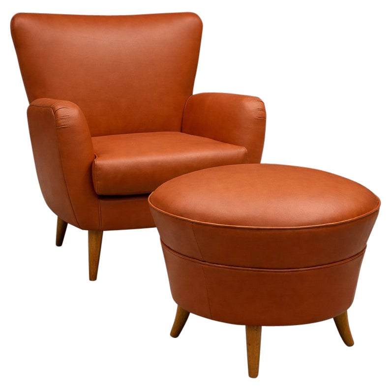 Coppia di poltrone in pelle e legno color cognac di Carlo Hauner. Altezza della seduta: 25 cm. Usura dovuta all'età e all'uso. PER LA SPEDIZIONE, RICHIEDICI DI RICEVERE IL MIGLIOR P...