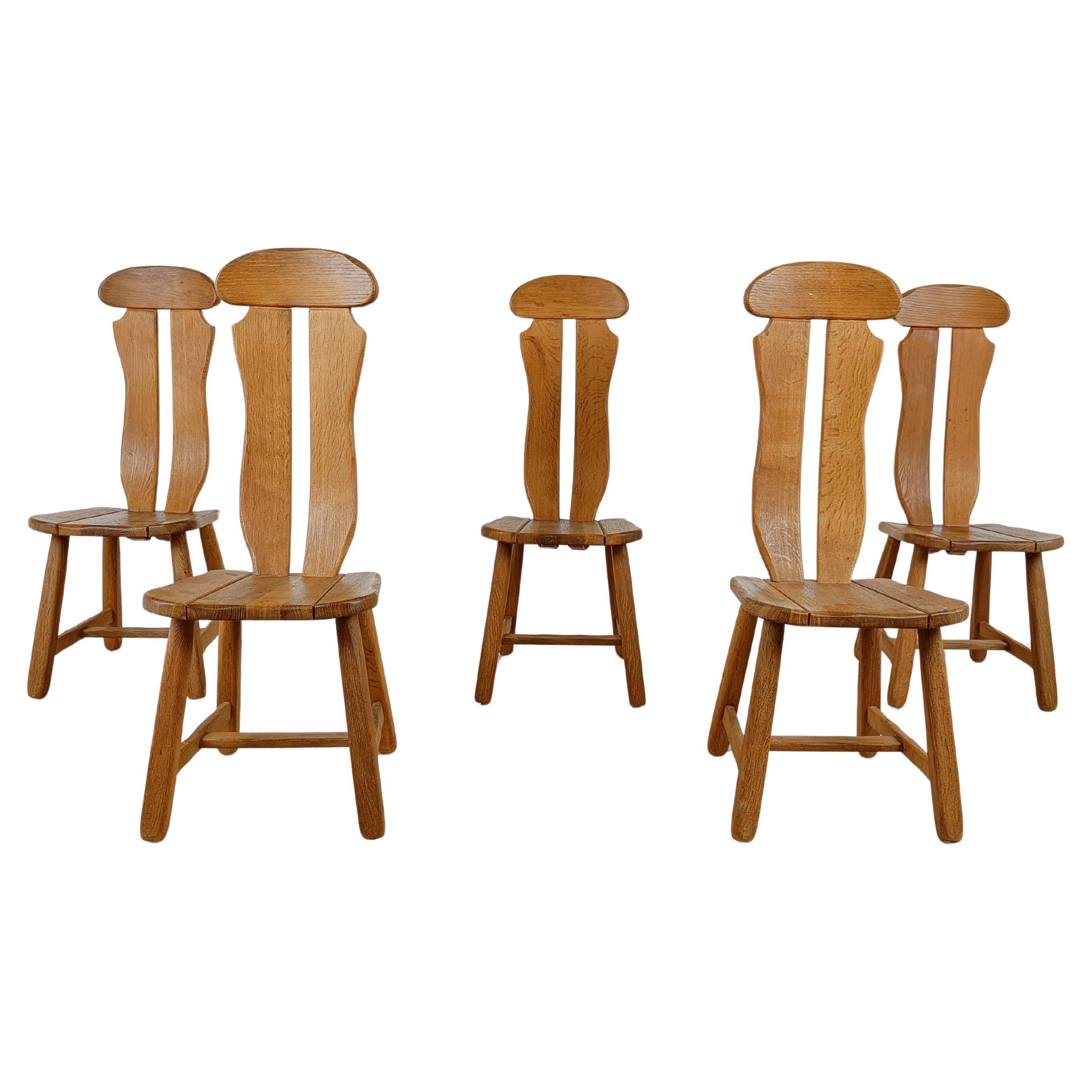 Belgio, 1970 Sedie da pranzo brutaliste costruite in Oak. 3 con braccioli, 3 senza. 16 - 21,5 "l x 21 "p x 44,5 "h x 18" di seduta Rif. MOD1167 $ 7.800 ( set di 6 )