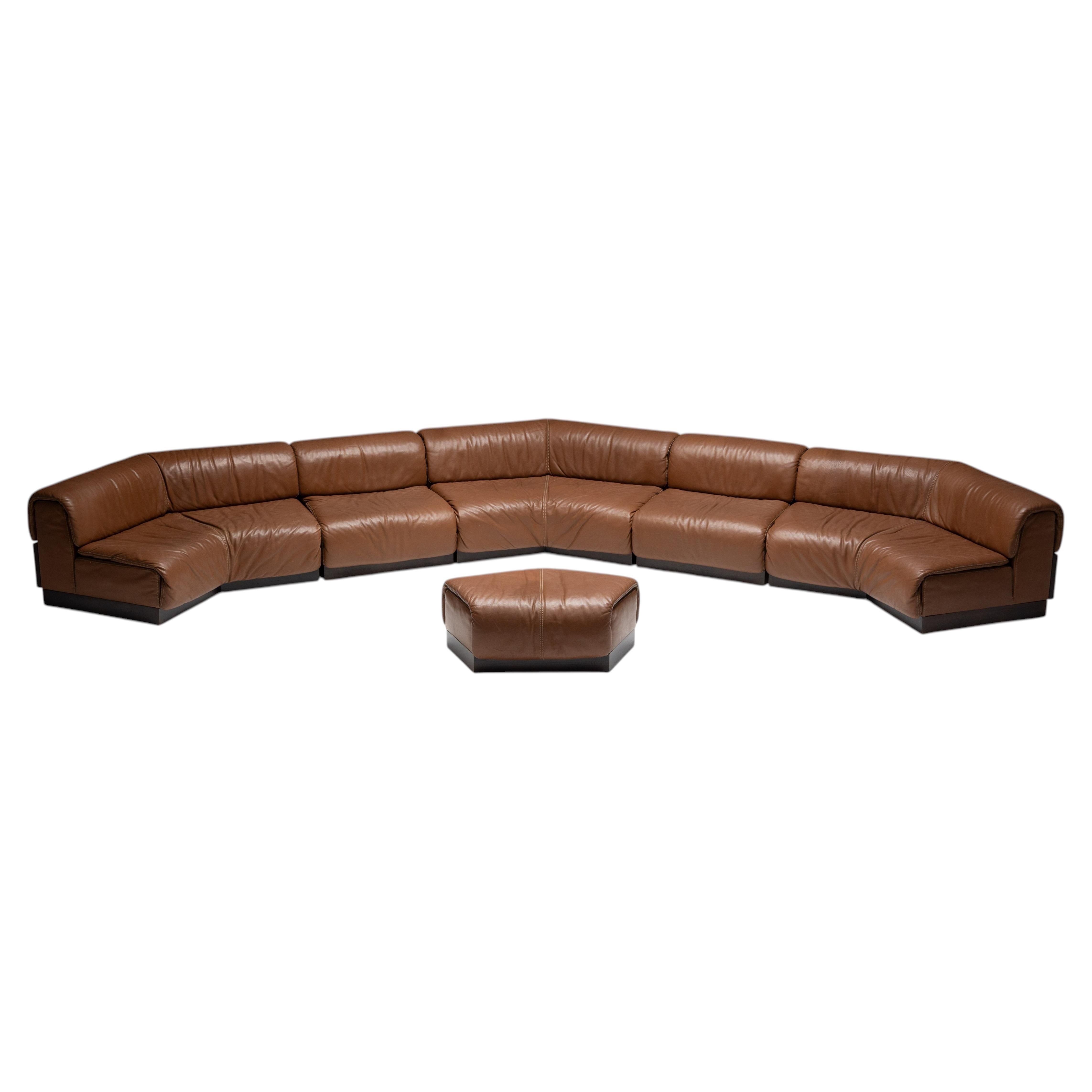 Divano in pelle modulare, prodotto da Durlet, Belgio, anni '70.