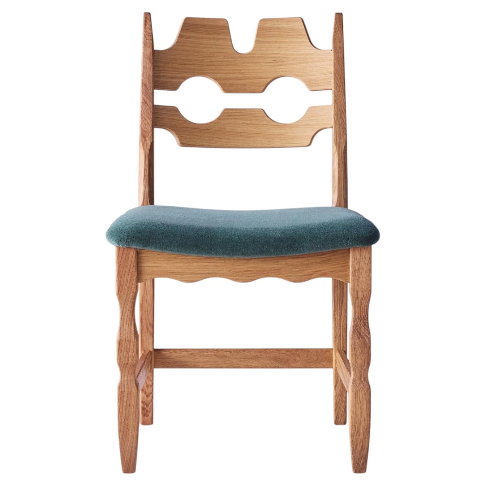Sedia da pranzo in Oak con seduta imbottita in velluto Mohair verde, modello Razor