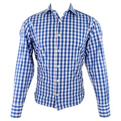 EREDI PISANO Taglia S Camicia a maniche lunghe in cotone a quadretti blu e bianchi con colletto aperto