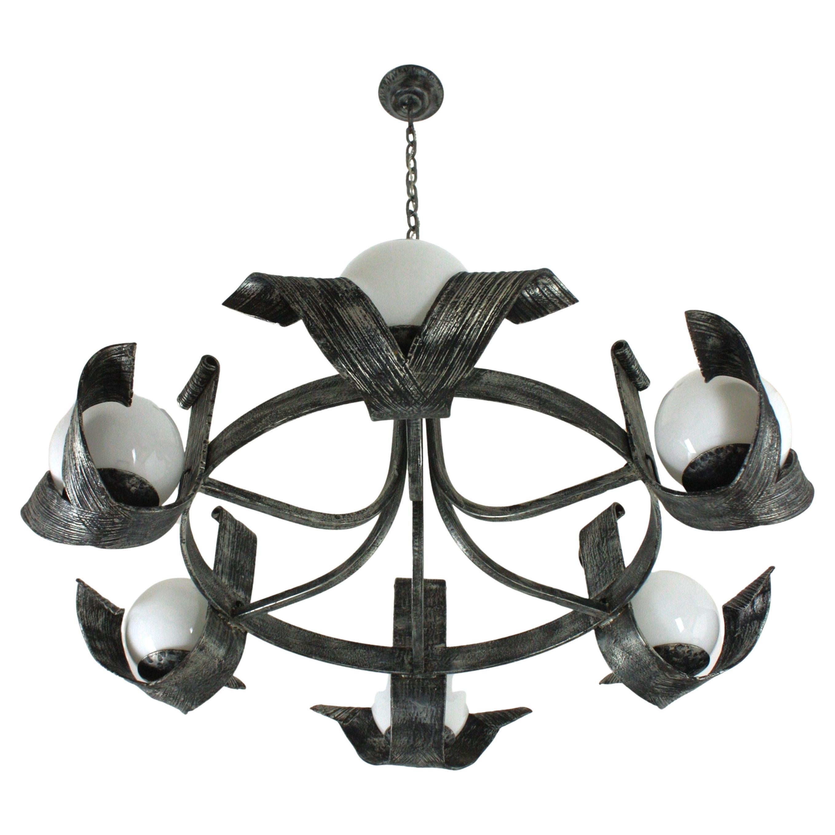 Metà XX secolo Spagnolo Mid-Century moderno Ferro Art Illuminazione