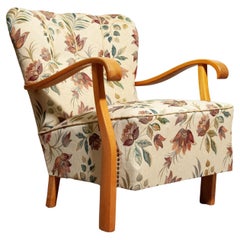 Questa rara coppia di poltrone è stata progettata e prodotta da Frits Henningsen in Danimarca all'inizio degli anni Trenta. Le cornici sono realizzate in mogano massiccio, con tonal...