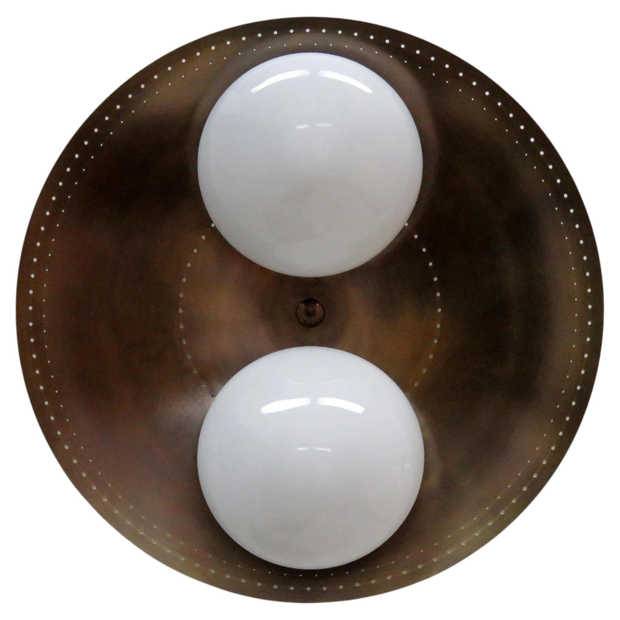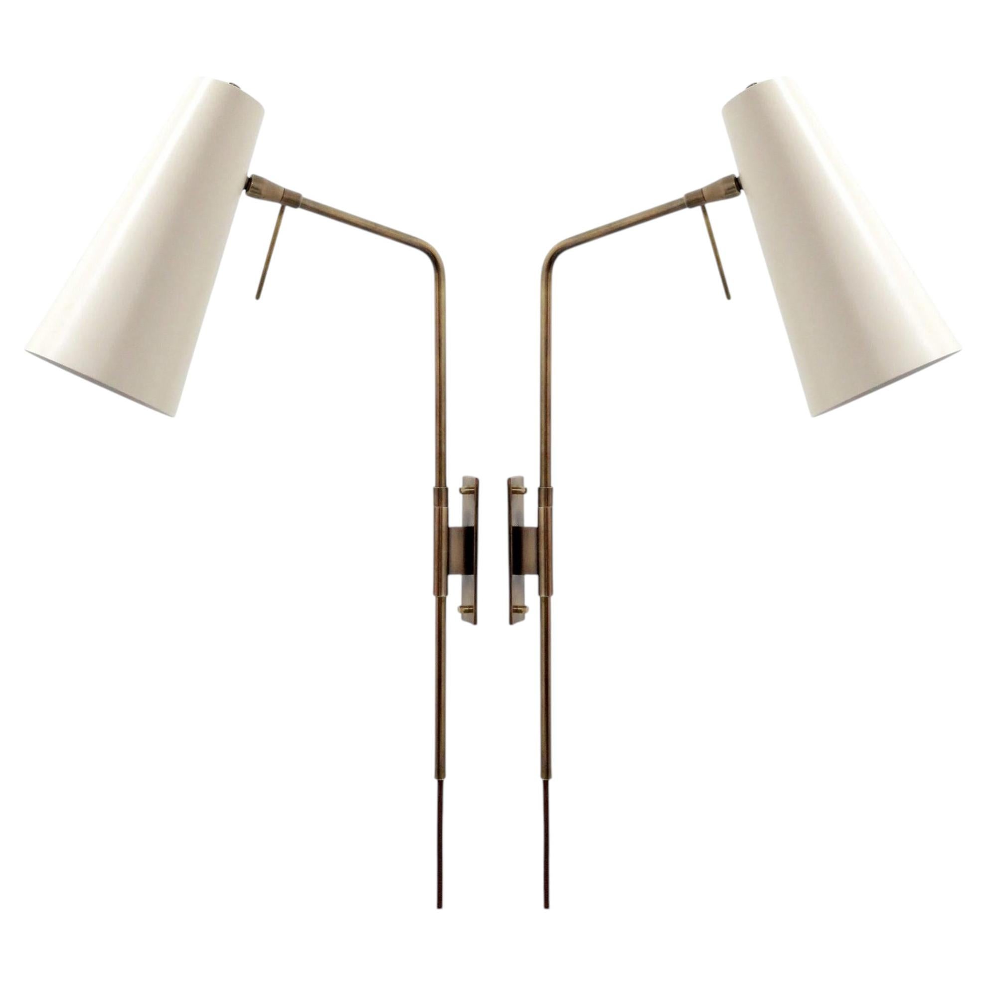 meravigliosi spot articolati 'Copa' disegnati da Gallery L7, realizzati e rifiniti a mano a Los Angeles in ottone americano con un cono in ottone invecchiato su asta smaltata nera. L...