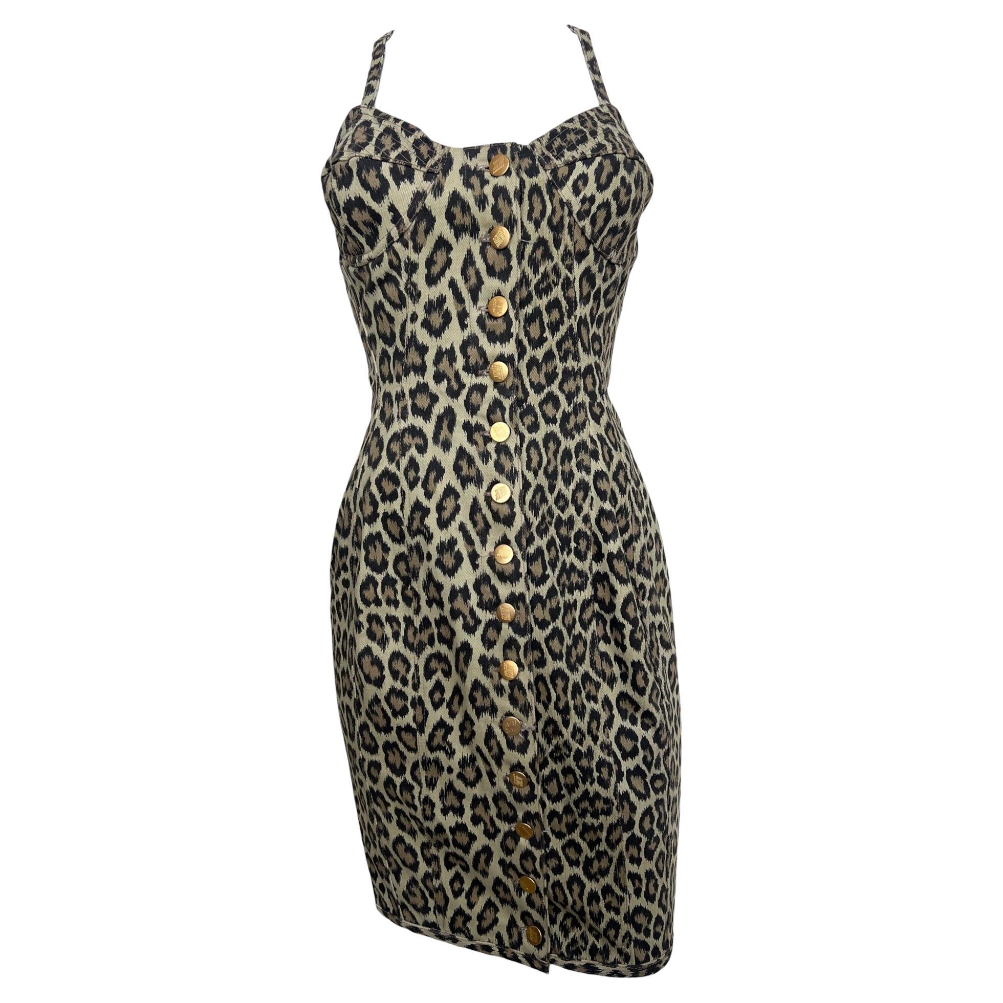 Questo Jean Paul Gaultier è un sogno per i collezionisti. Questo dinamico abito in denim con stampa leopardata proviene dalla collezione Primavera/Estate 1989 "Travel Around the Worl...